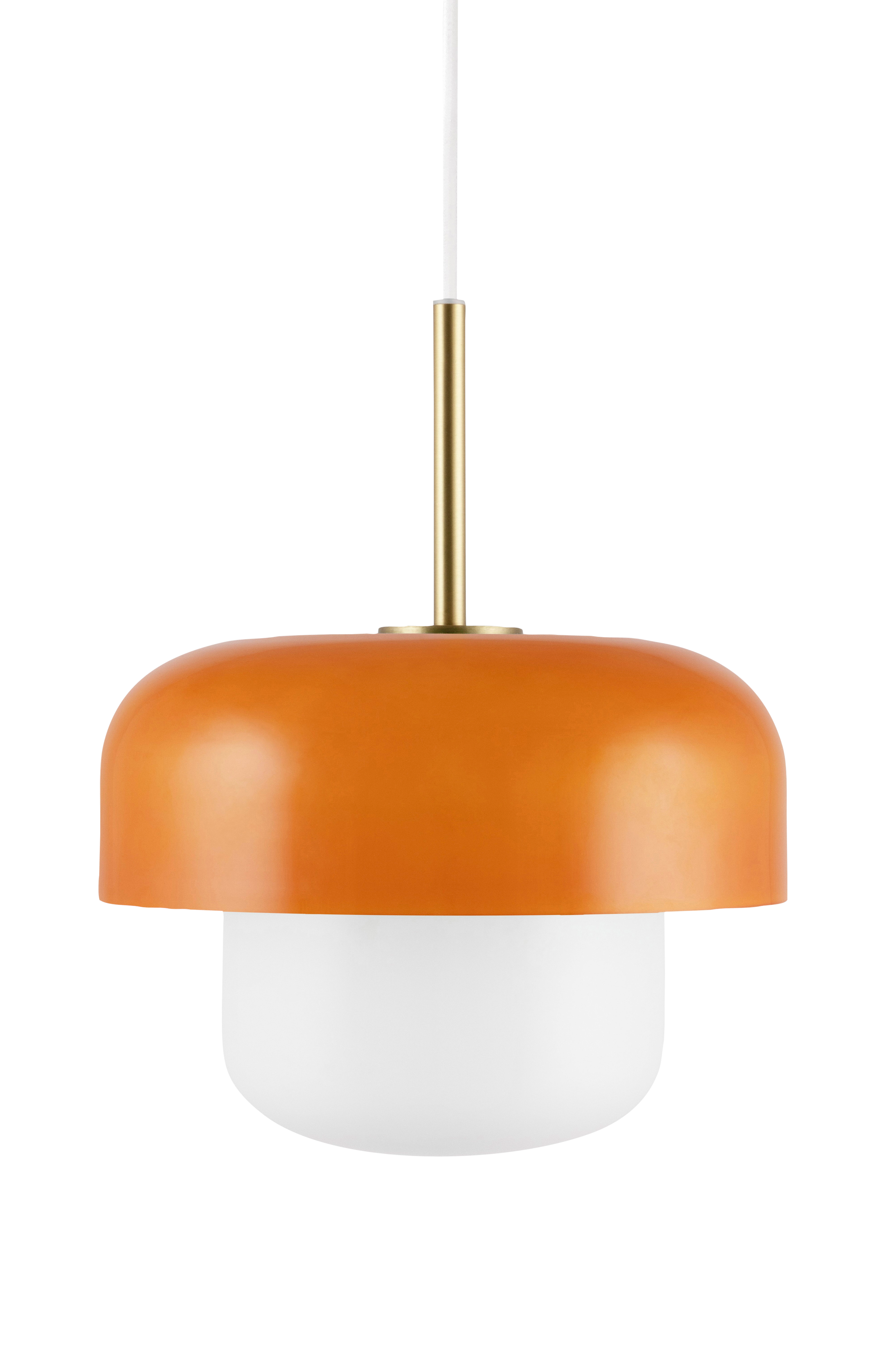 Detta är en 40 års-jubileumsutgåva av Globen lightings pendel stina, formgiven av Anders Hall. Stina är en retroinspirerad färgklick där glaset är munblåst och målat för hand, vilket innebär att vissa variationer kan förekomma. Det vita innerglaset skruvas fast på en svängtapp som gör att du enkelt kan justera glaset så att det hänger rakt. Pendeln matchas upp av detaljer i borstad mässing och en 120 cm lång textilkabel och vit takkopp gjord av metall. Takkontakt ingår ej.