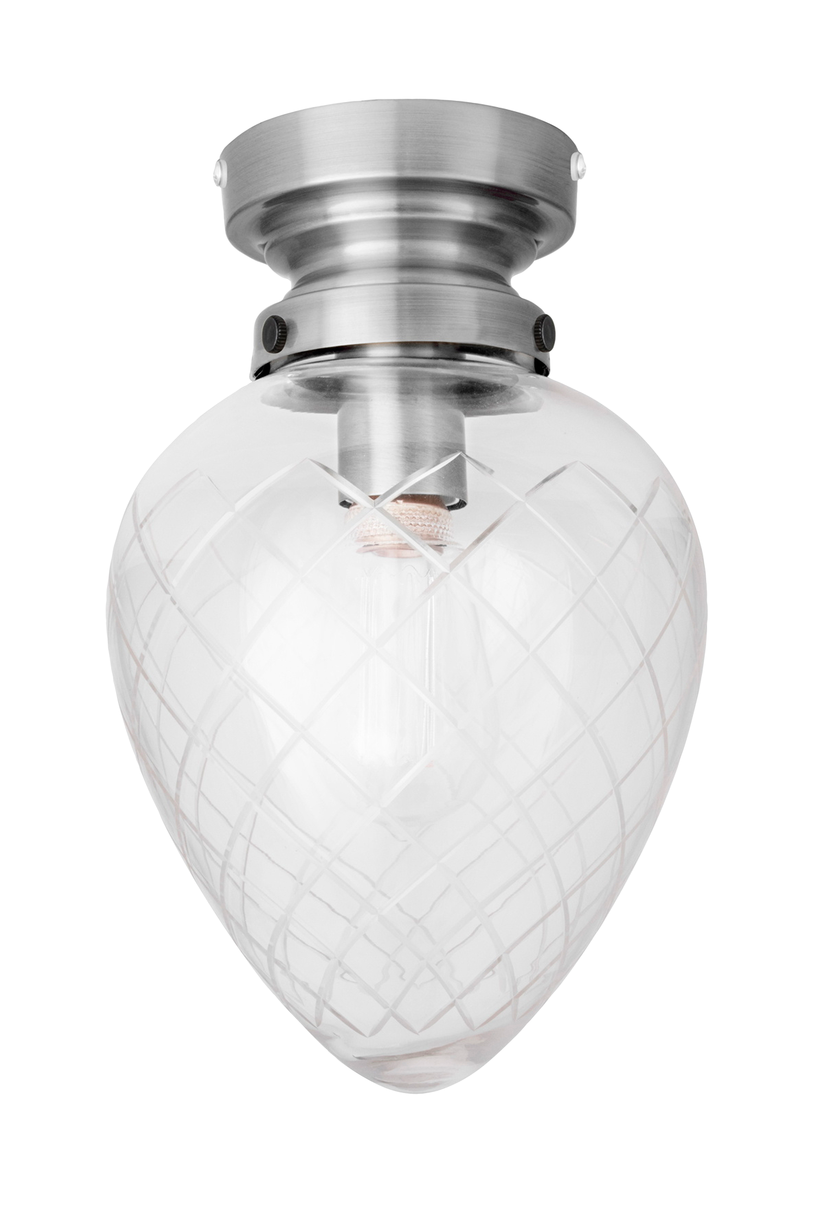 Juni är en taklampa som andas elegans med sin slipade glasskärm och antika stål, en hyllning till det tidiga 1900-talets design. Lampan är ip44-klassad, vilket gör den idealisk för badrum. Lampans kontakt för takanslutning säljs separat.
