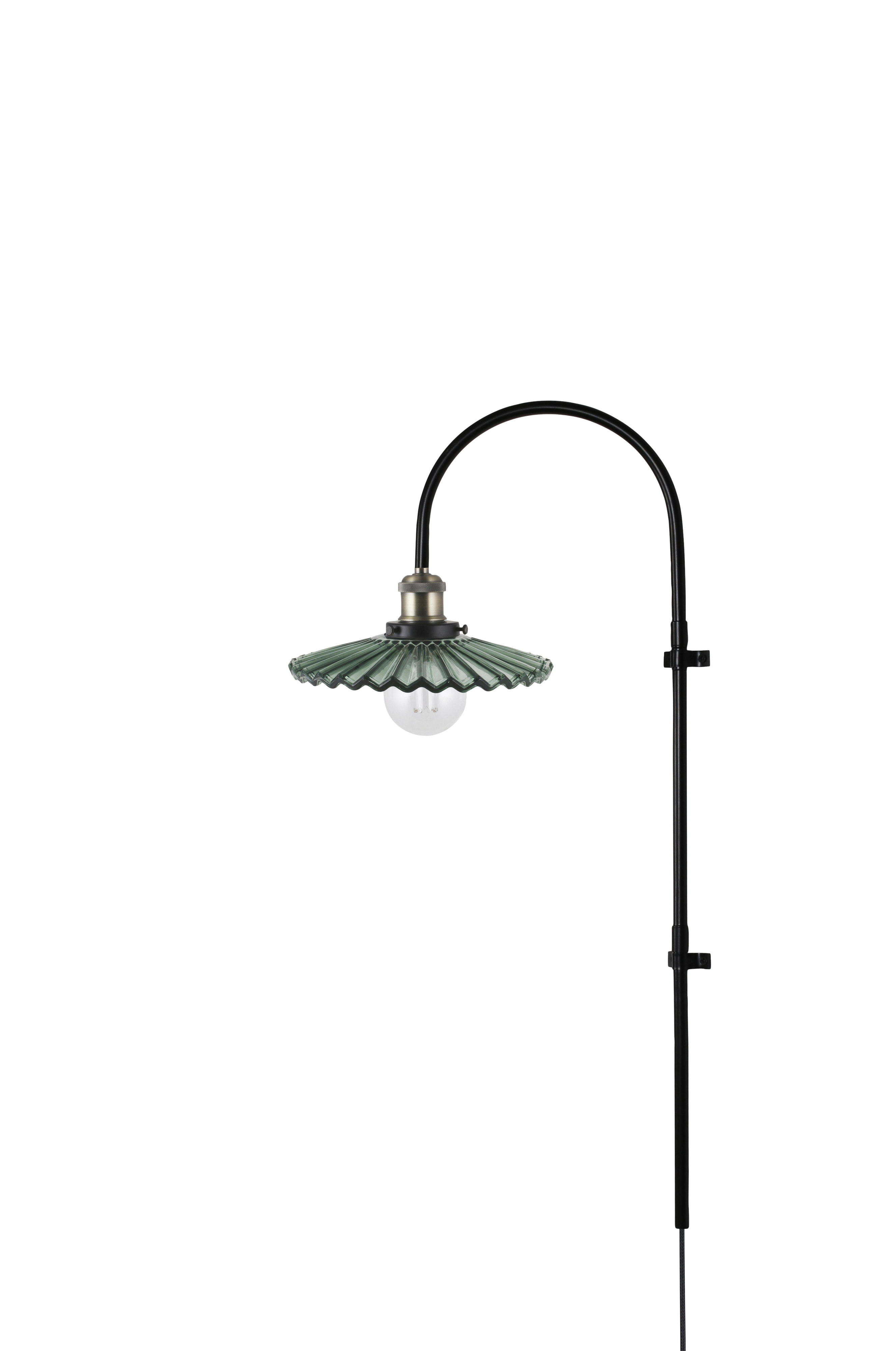 Cobbler är en ny tappning på en klassisk skomakarlampa som gör sig perfekt i flera olika inredningar. I det modernt lantliga- eller sekelskifteshemmet, men också i den franska bistroinredningen. Lampan har en skärm av veckat klarglas som ger en vacker ljusspridning i det räfflade glaset. Väggfästet har två stycken metallbyglar med medföljande skruvar för montering på väggen och hela lampan är justerbar i sidled. Skärmens diameter är 25 cm och lampans totala djup ut från väggen är 38 cm. Lampan har en 200 cm lång svart textilkabel med svart brytare och stickkontakt. Design: GL Design Studio. Ljuskälla medföljer ej.