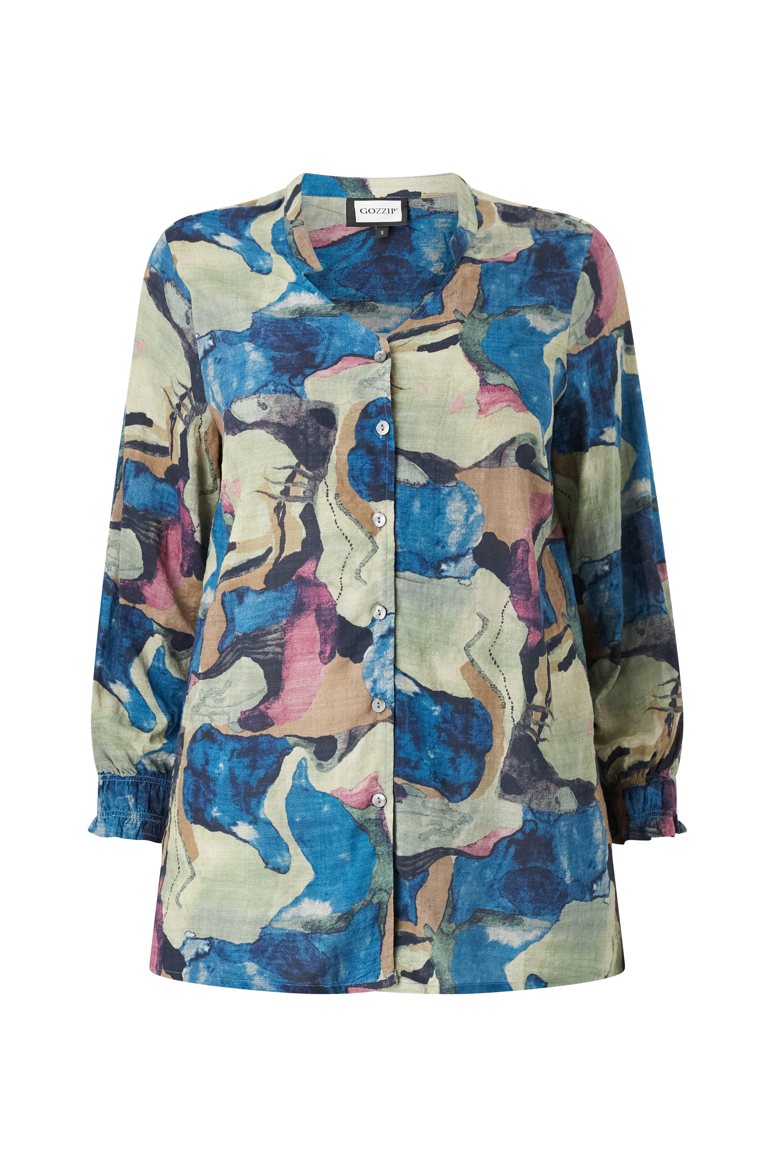 • Mönstrad blus• V-ringning• Långa ärmar• Knappstängning• Plusstorlekar