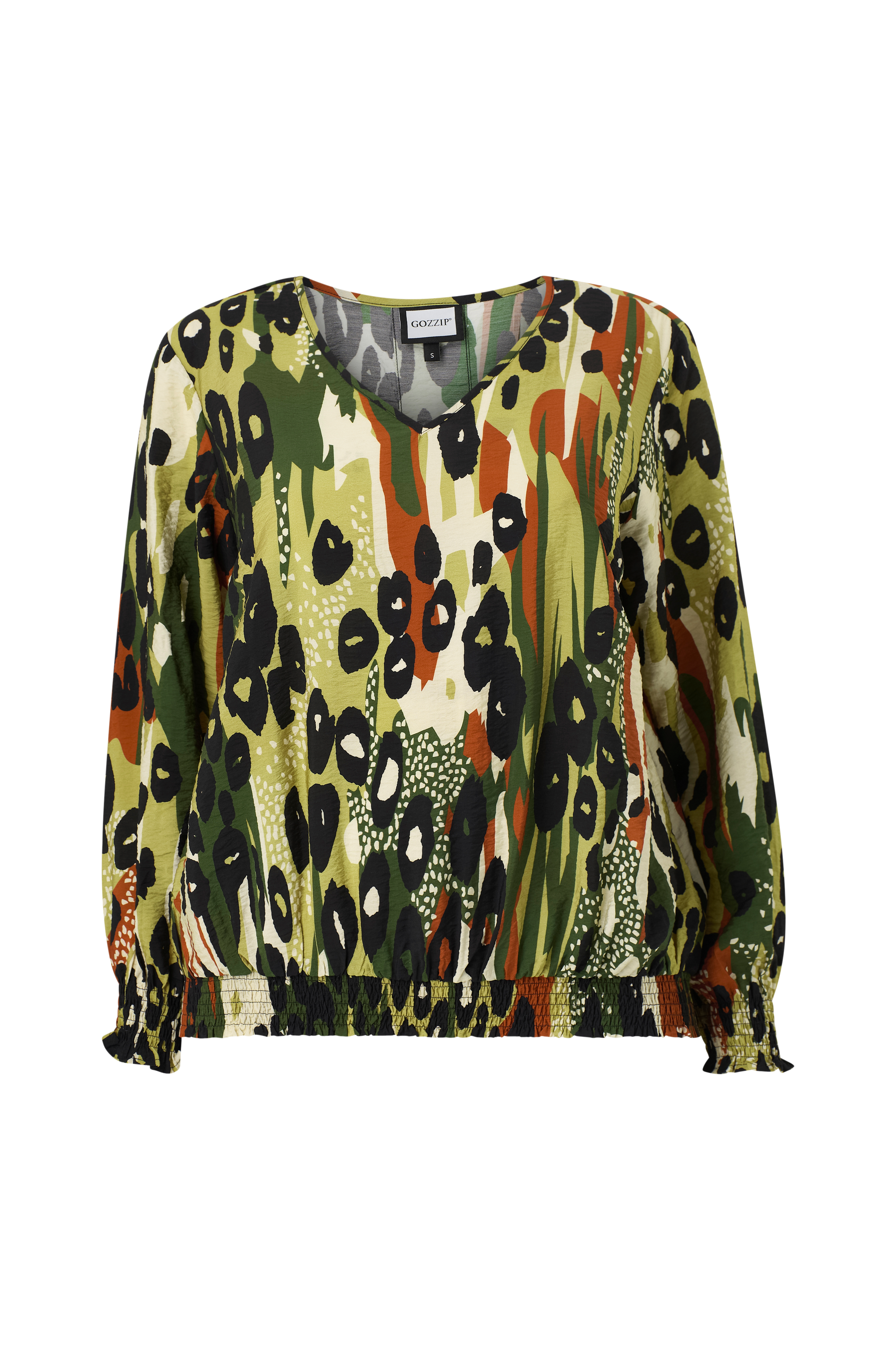 • Krinklad, långärmad blus med v-ringad hals• Smock i ärmsluten och i nederkanten• Plusstorlekar