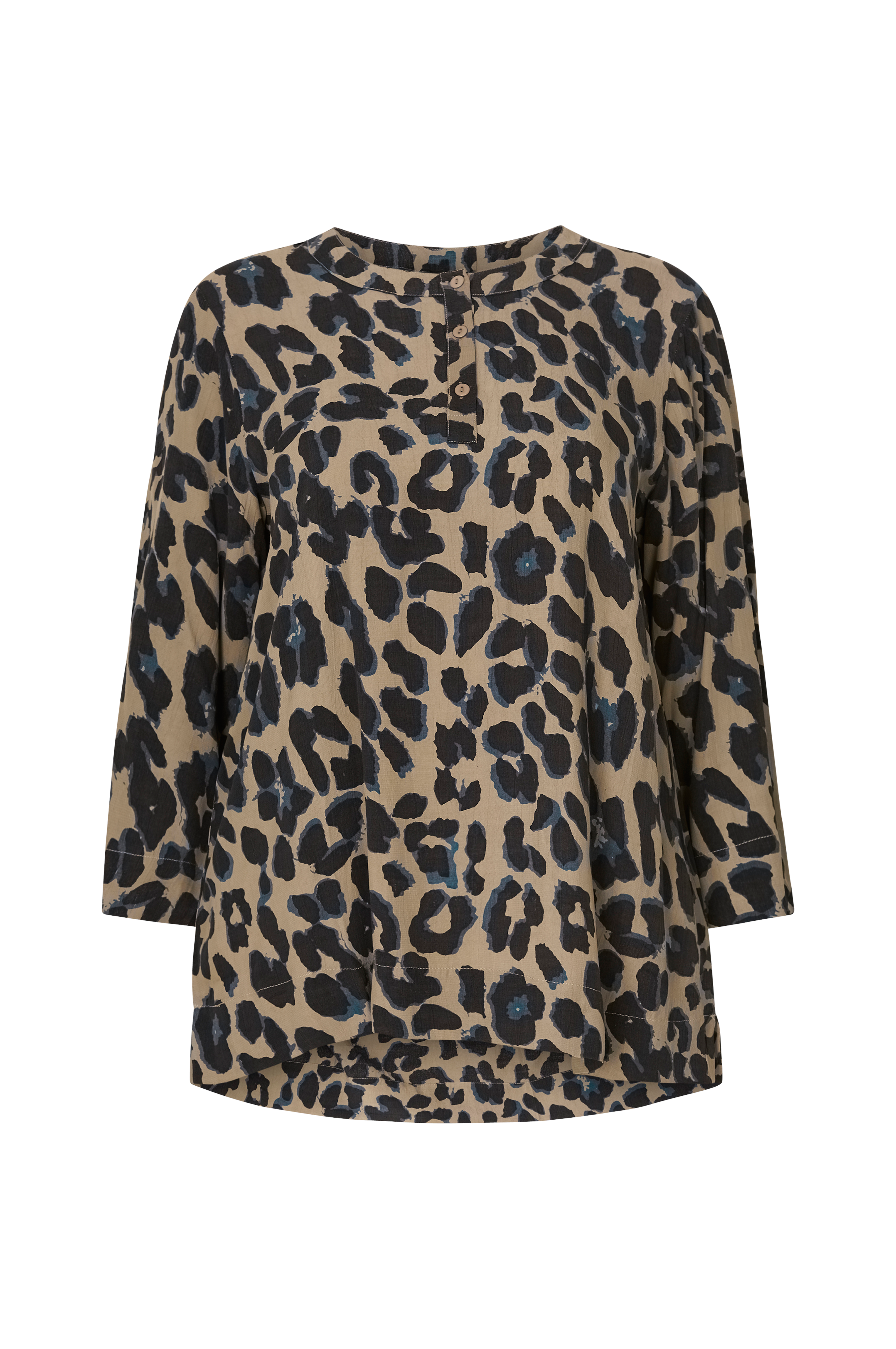 • Plusstorlekar• Rak modell• Rund hals med kort knappslå• Utsvängd ärm• Korta sprund nedtill i sidorna