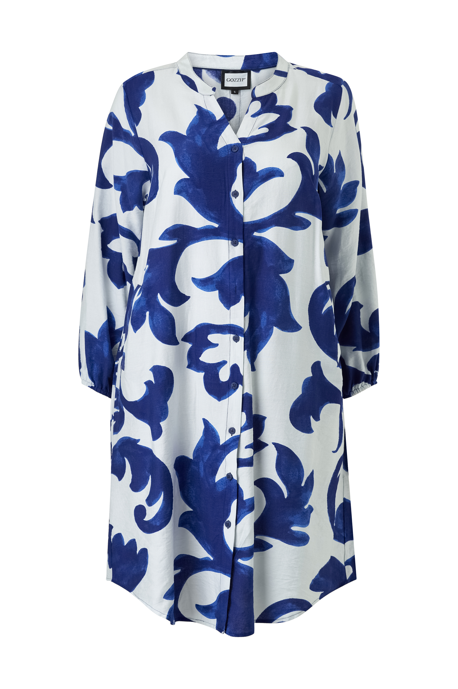 • Mönstrad klänning i viskosmix• V-ringning• Knappstängning• Långa ballongärmar med elastiska ärmslut• Fickor• Längd: 114 cm i storlek S• Plusstorlekar