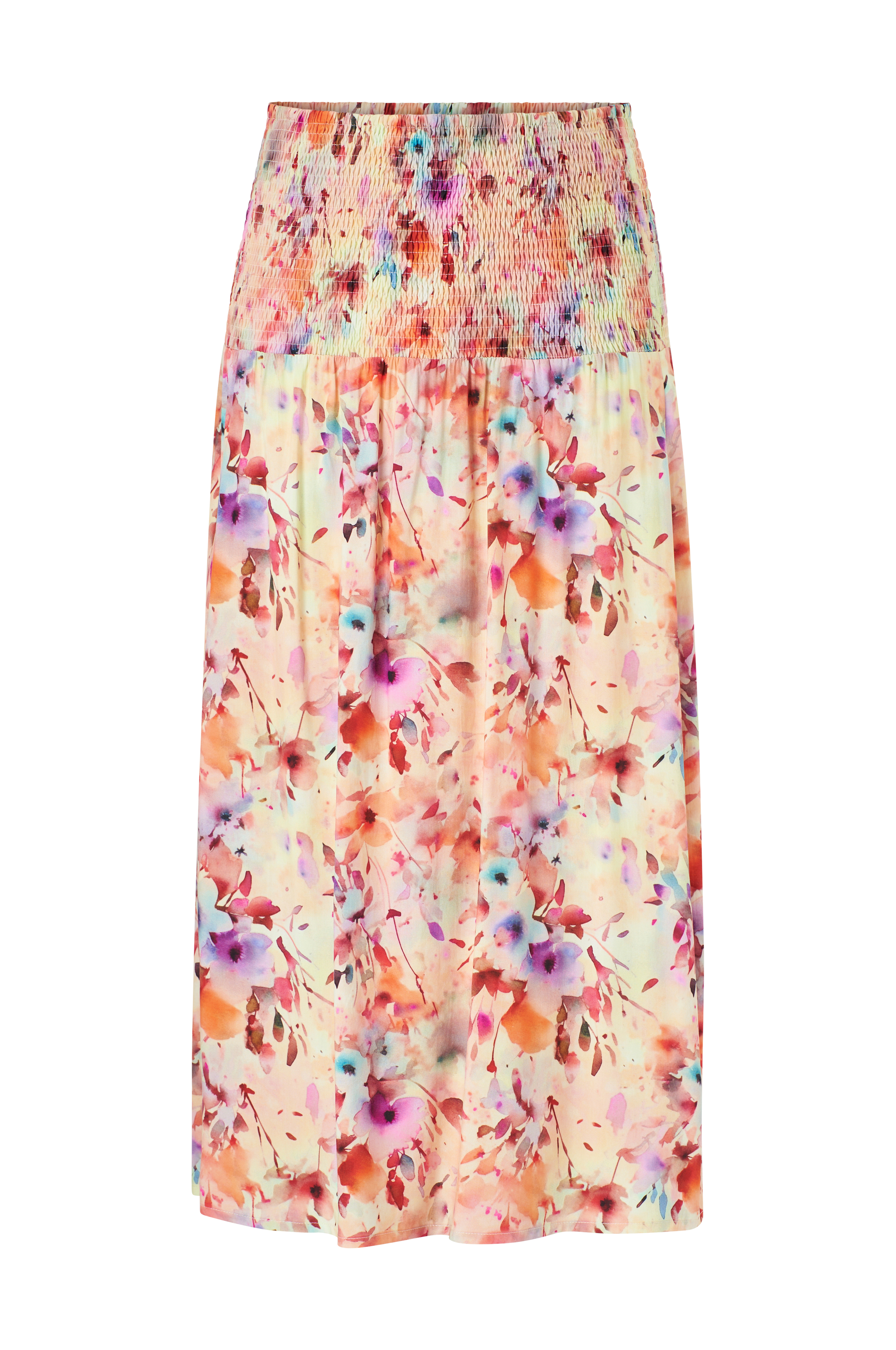 • Plusstorlekar• Lång, mönstrad kjol i viskos• Bred smock i midjan• Längd: 97 cm i storlek S
