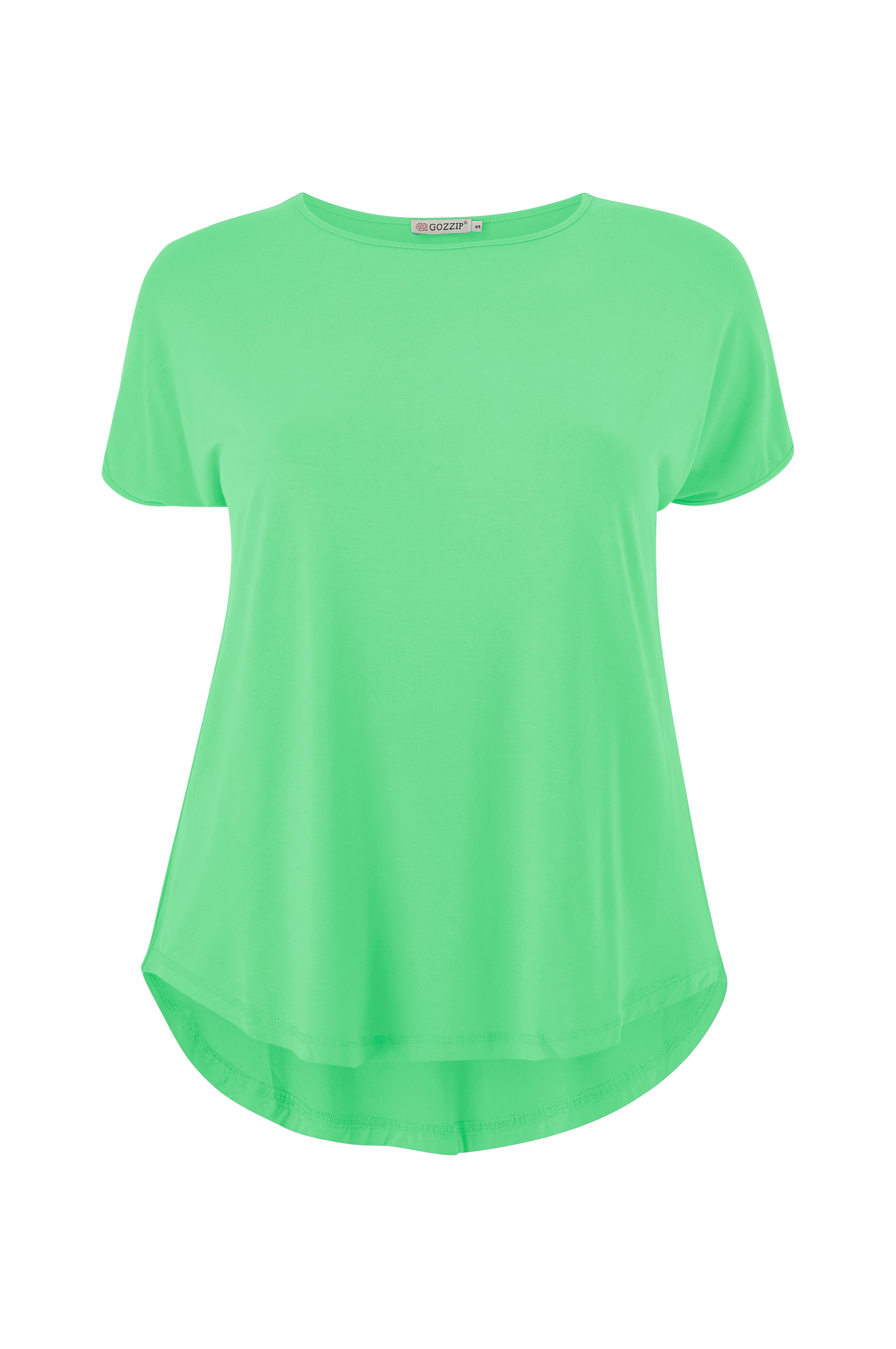 • Kortärmad, stretchig topp i viskos• Rund halsringning• Något längre baksida• Rundad nederkant