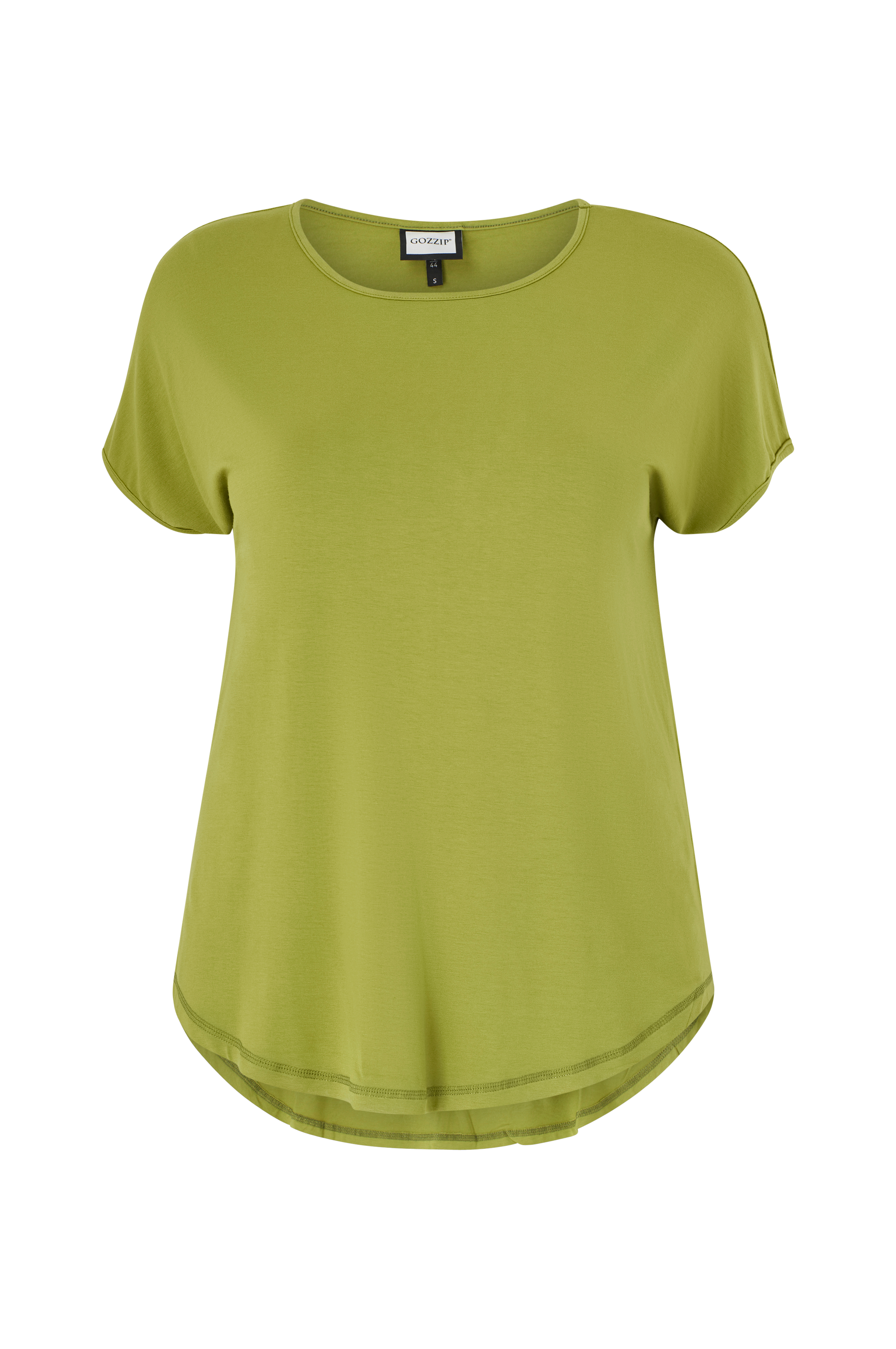 • Kortärmad, stretchig topp i viskos• Rund halsringning• Något längre baksida• Rundad nederkant