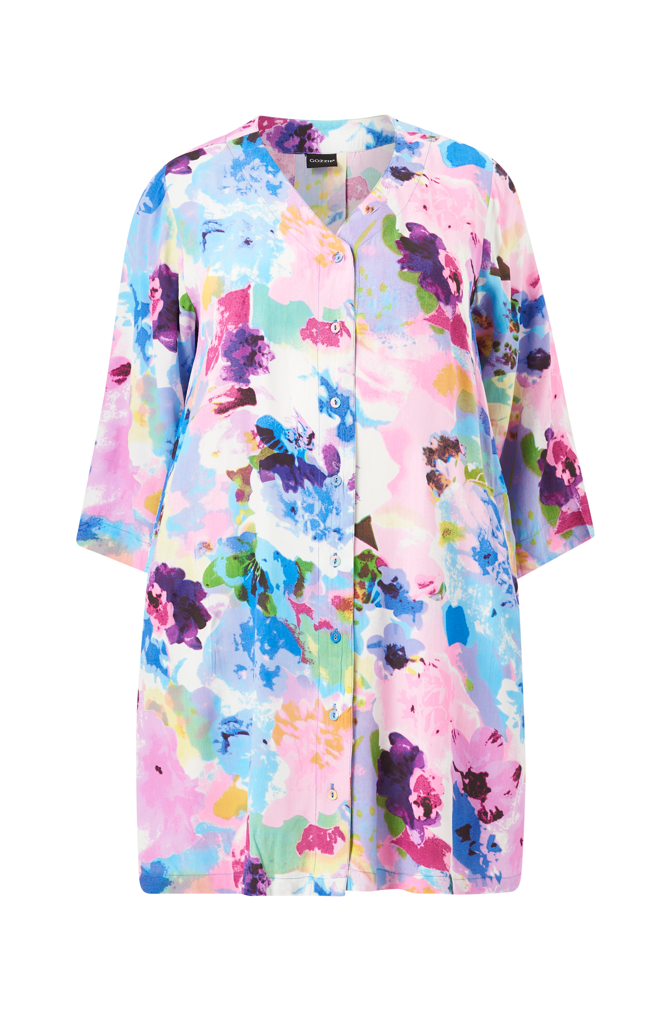 • V-ringning• Knappar fram• 3/4-långa, vida ärmar• Fickor i sidorna• Plusstorlekar• Längd: 96 cm i storlek S