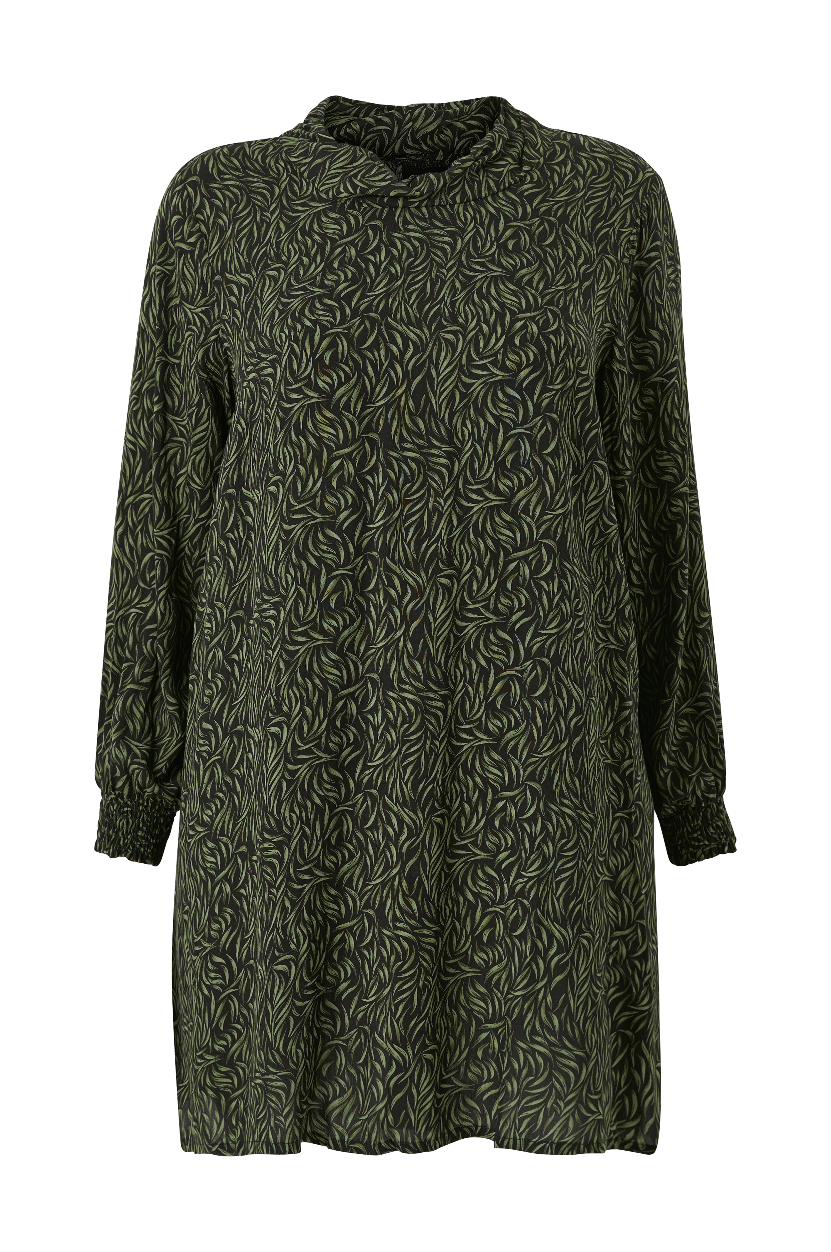 • Tunika i viskos• Rund, hög halsringning• Smock i ärmsluten• Veck bak• Plusstorlekar• Längd: 99 cm i storlek S