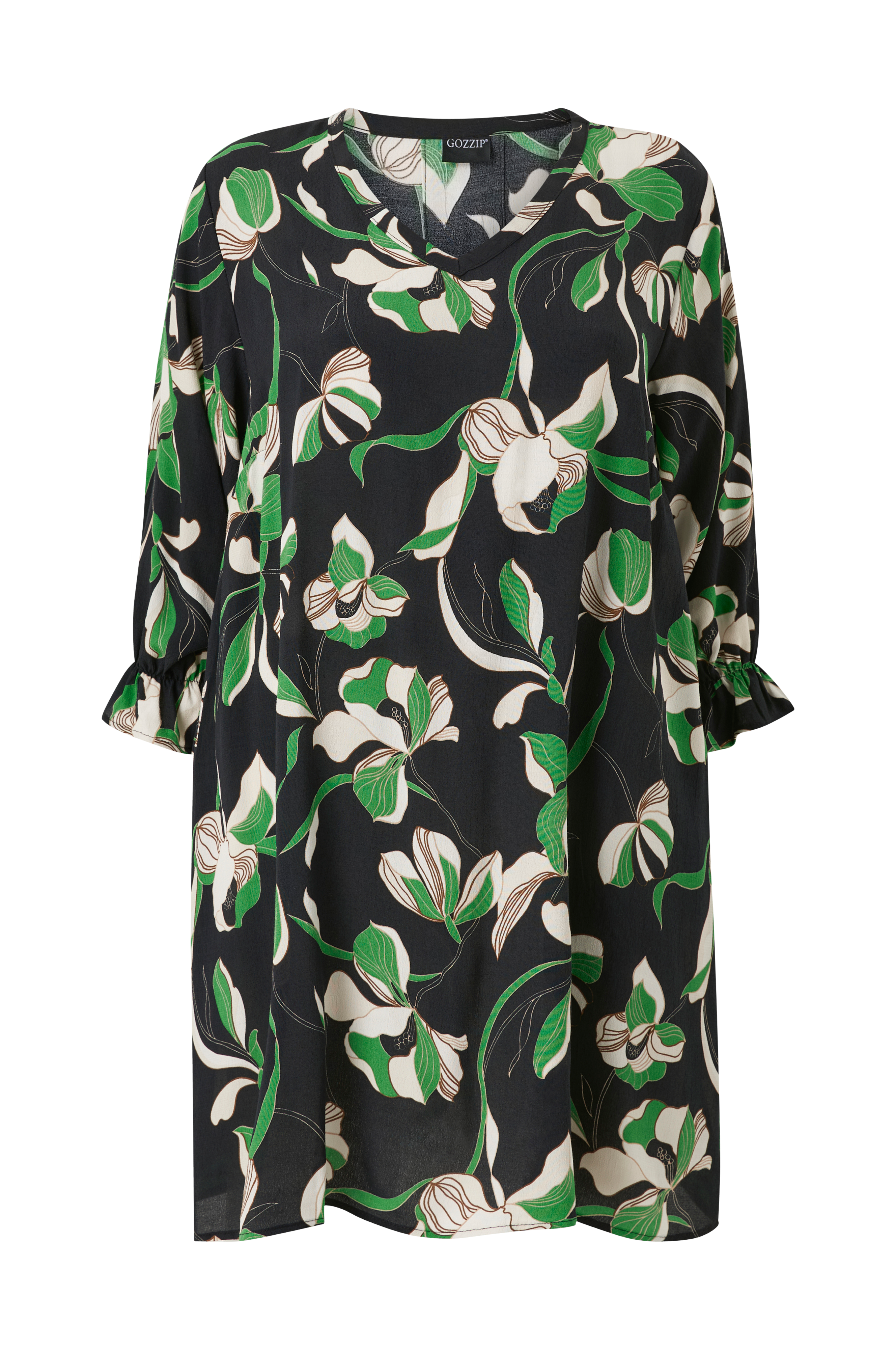 • Tunika i viskos med tryckt mönster• V-ringad hals• Resår med volang i ärmsluten• Plusstorlekar• Längd: 87 cm i storlek S