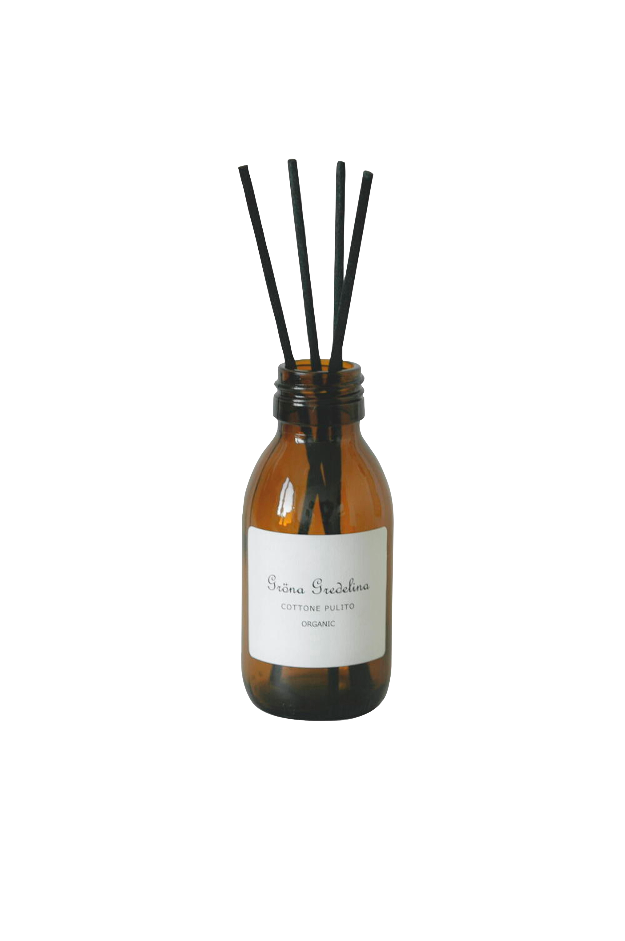 Gröna Gredelinas doftpinnar / diffusers skiljer sig lite från många andra då de är utan alkohol. Våra doftpinnar innehåller istället en ekologisk doftbärande olja. Träpinnarna drar olja från flaskan och avger en behaglig doft. Doften varar i ca 3 månader beroende på antal pinnar du har i. Oljan gör att doften blir mildare och väldigt behaglig. Cottone Pulito är en fräsch och krispig doft av nytvättad ren bomull. Innehåll: Ekologisk rapsolja, ftalatfri doftolja. 100 ml.