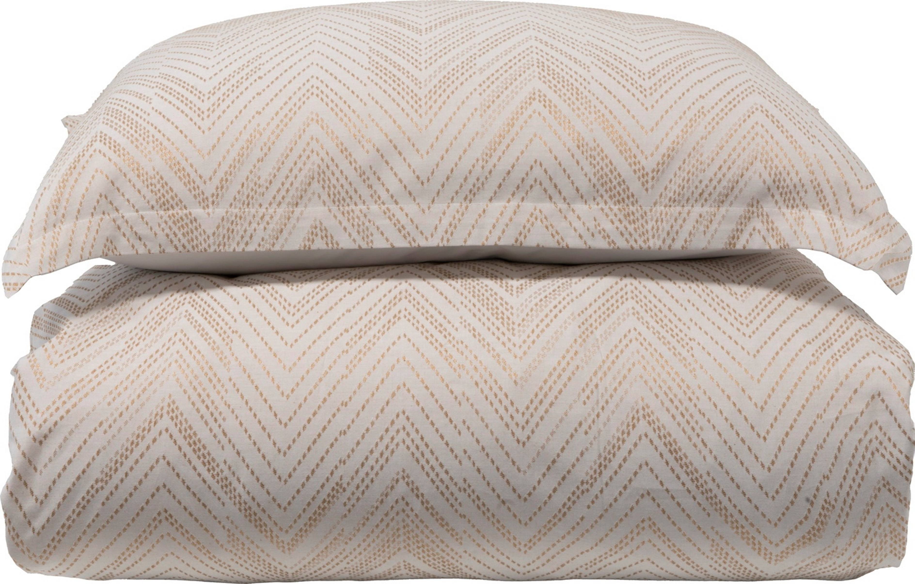 Zeva är ett elegant bäddset i jacquardvävd sateen tillverkad av den finaste långstaplade bomullen, tc 300. Det fina sicksackmönstret i ljus sand mot en vit bakgrund skapar en tidlös och exklusiv look. Mjukt, svalt och bekvämt - perfekt året runt och en garanterad favorit för dem som uppskattar äkta kvalitet. Det vävda sicksackmönstret dekorerar framsidan, medan baksidan är enfärgad. Örngottet har en 3 cm oxfordkant och påslakanet har en 2 cm oxfordkant. Dragkedja i nederkant på både påslakan och örngott. Sängsetet innehåller ett påslakan och ett örngott, vackert förpackade i en elegant presentask. Bäddsetet Zeva är en del av Halvor Bakkes kollektion med godnattsagor.