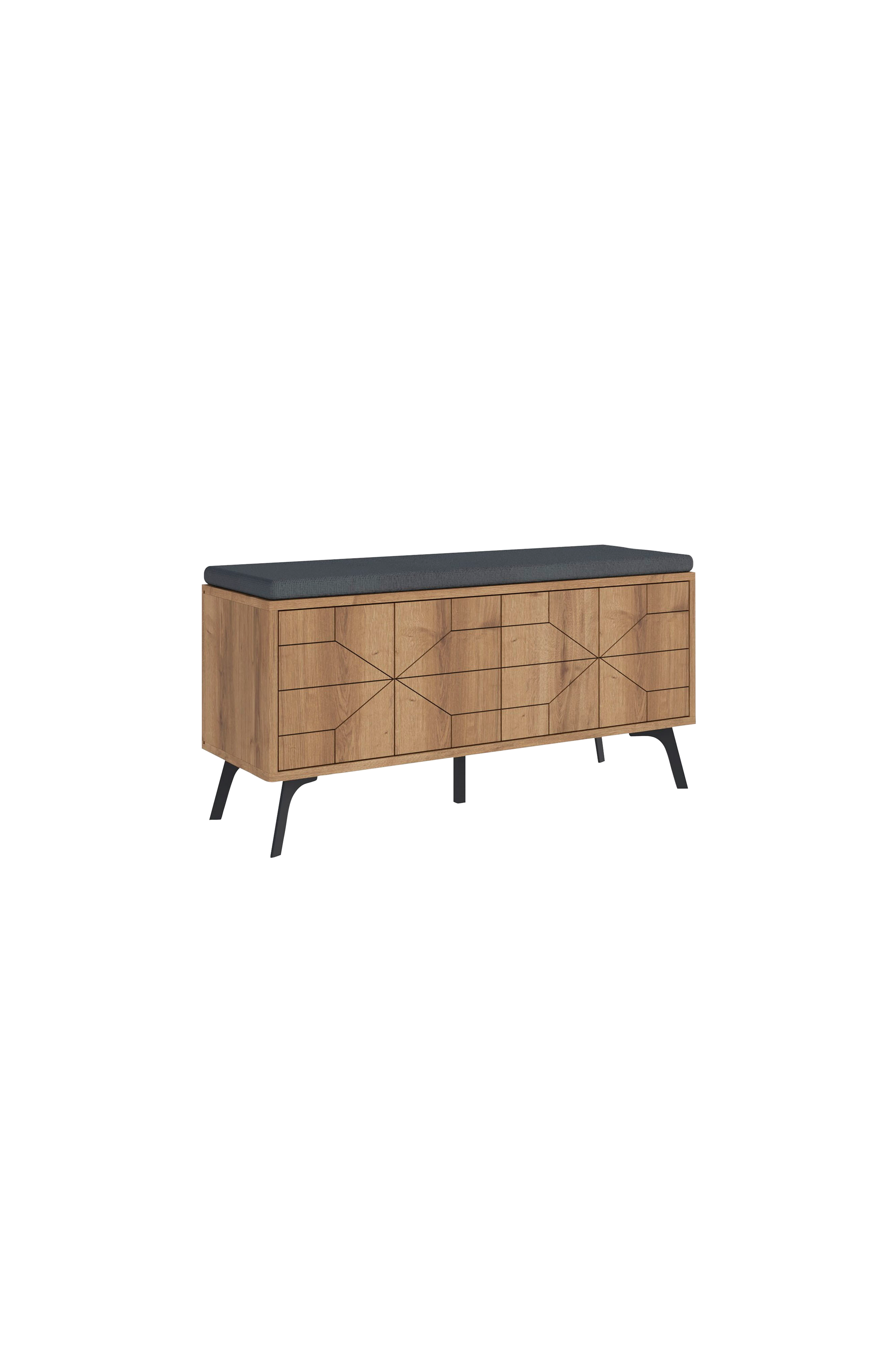 100% melaminbelagd spånskivatyg: 100 % polyestertjocklek: 18 mmben i metallbenhöjd: 15 cmbredd: 107 cm höjd: 55 cm djup: 35 cmviktkapacitet: 80 kg
