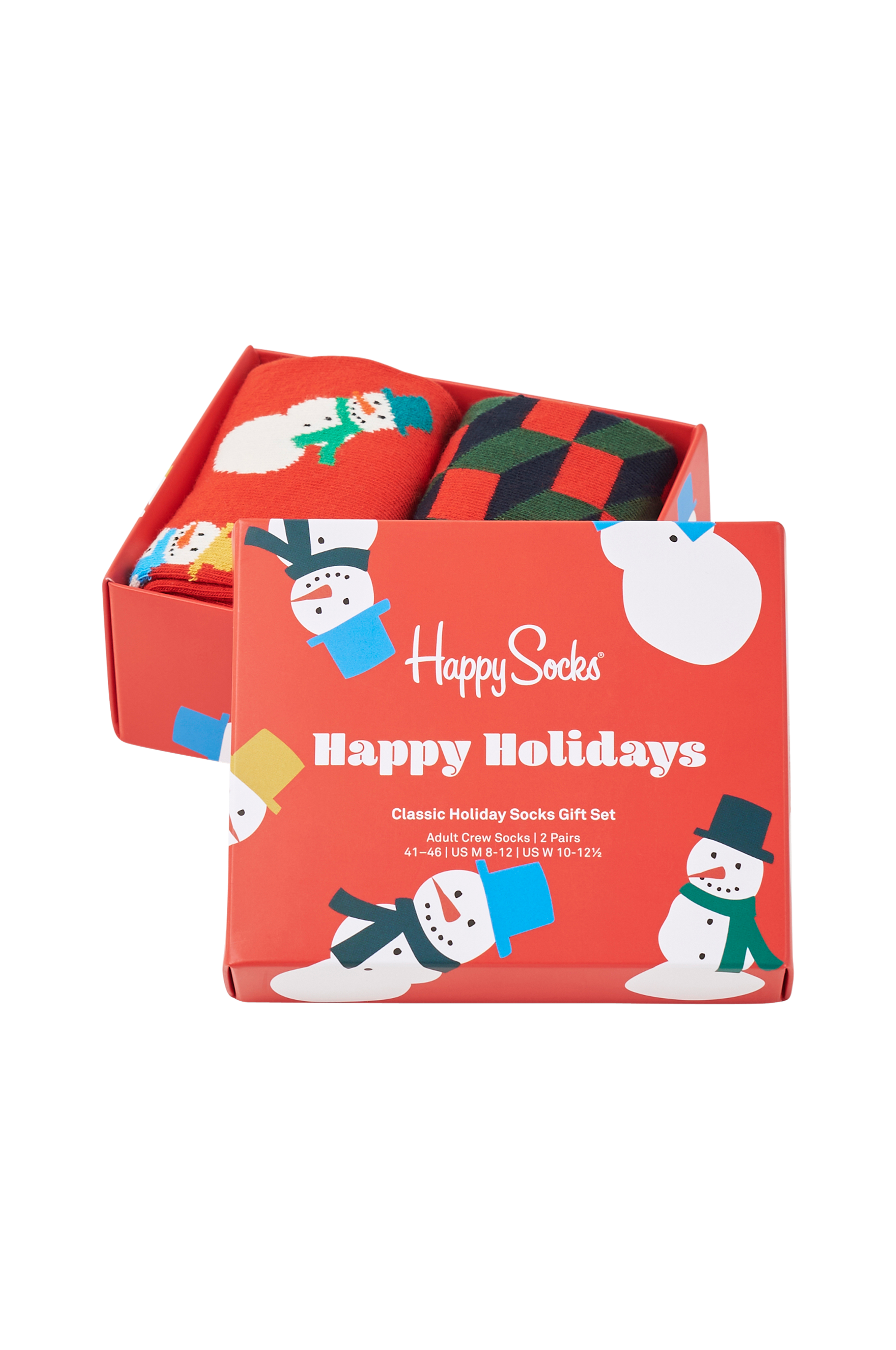 Presentask från Happy Socks som innehåller två par strumpor med mönster i olika färger. Ribbad kant på skaftet.