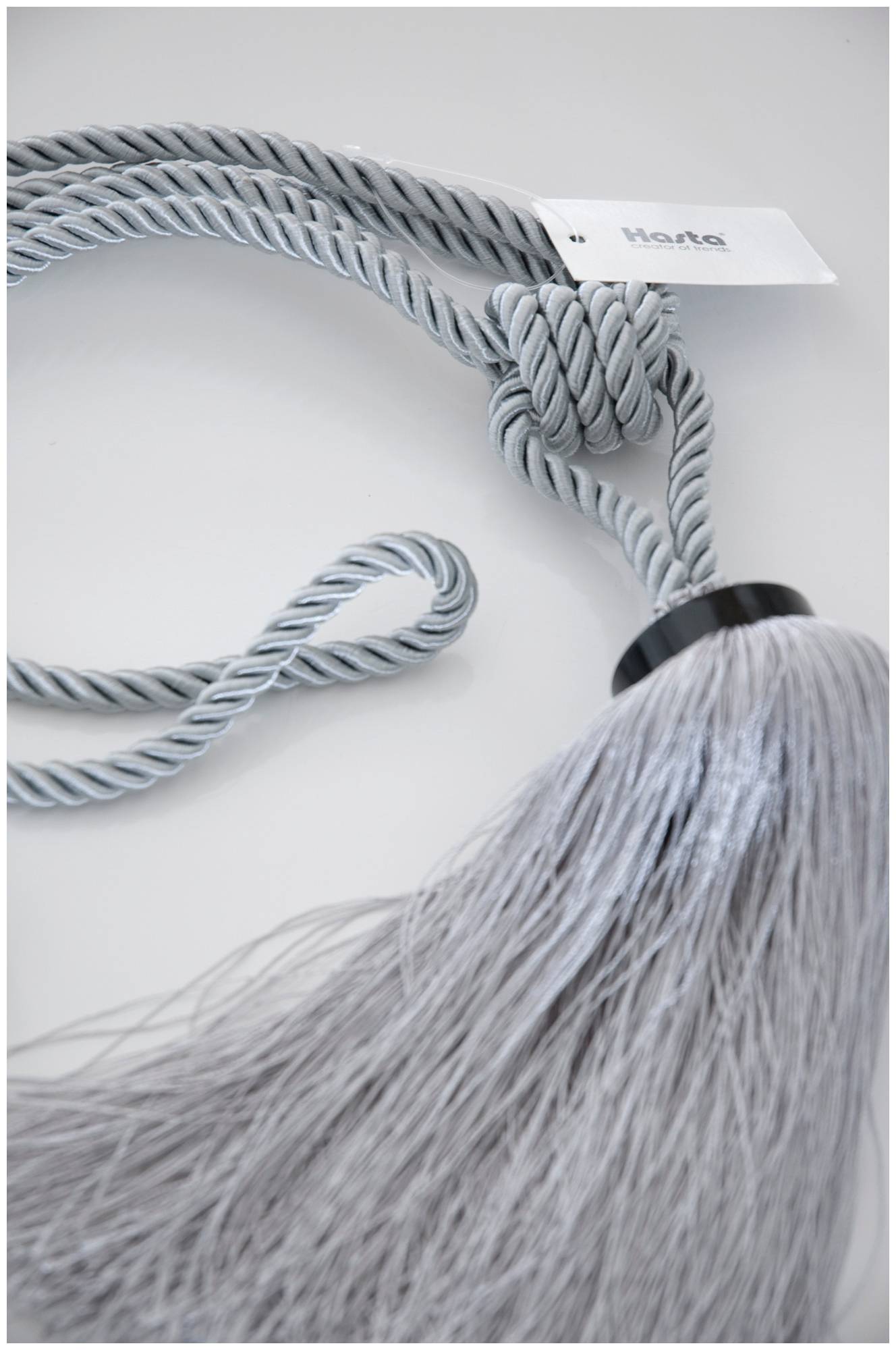 Modern omtagstofs med dekorativ ring i svart. 1 st/fp. Längd 65 cm inkl tofs.