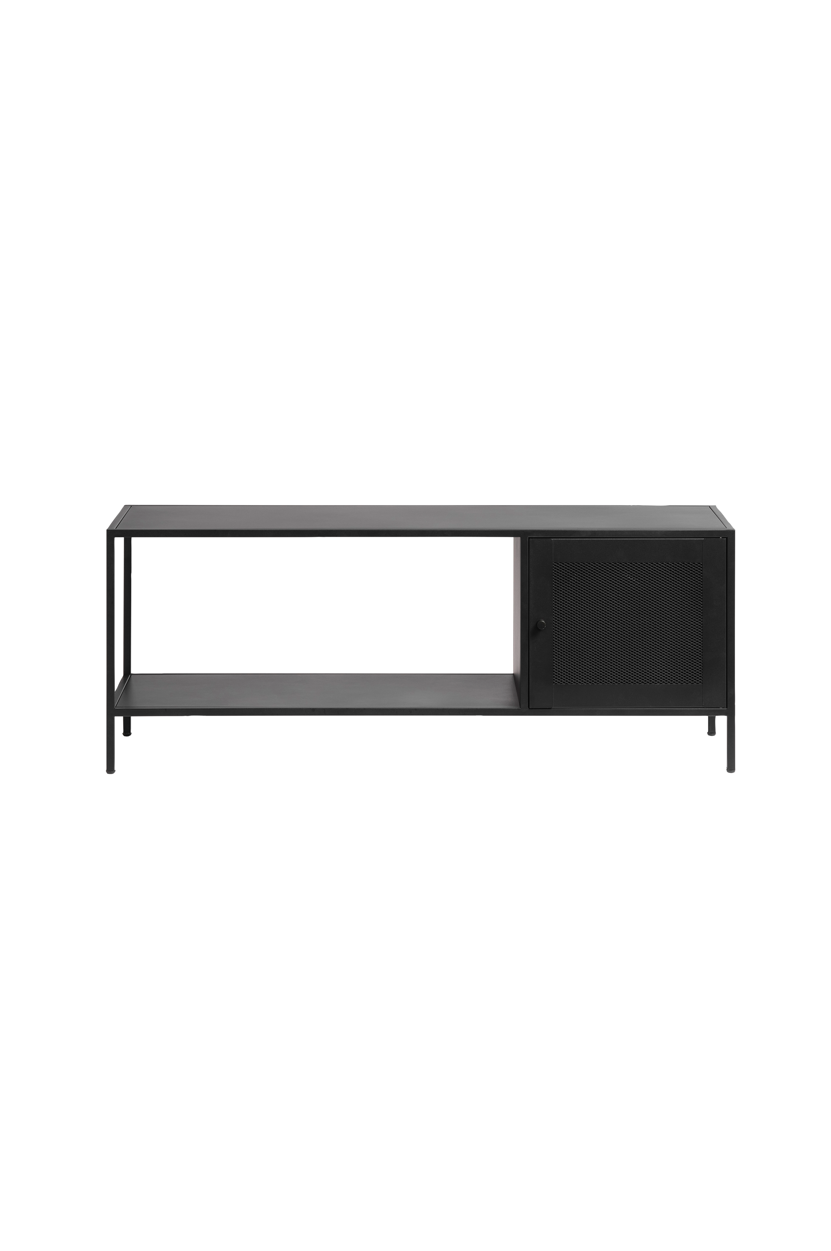 Raka linjer och industriella inslag med svart metall och insatser av svart metallnät ger Petra en modern och stilfull känsla som passar perfekt i alla rum som behöver en extra förvaringsmöbel.