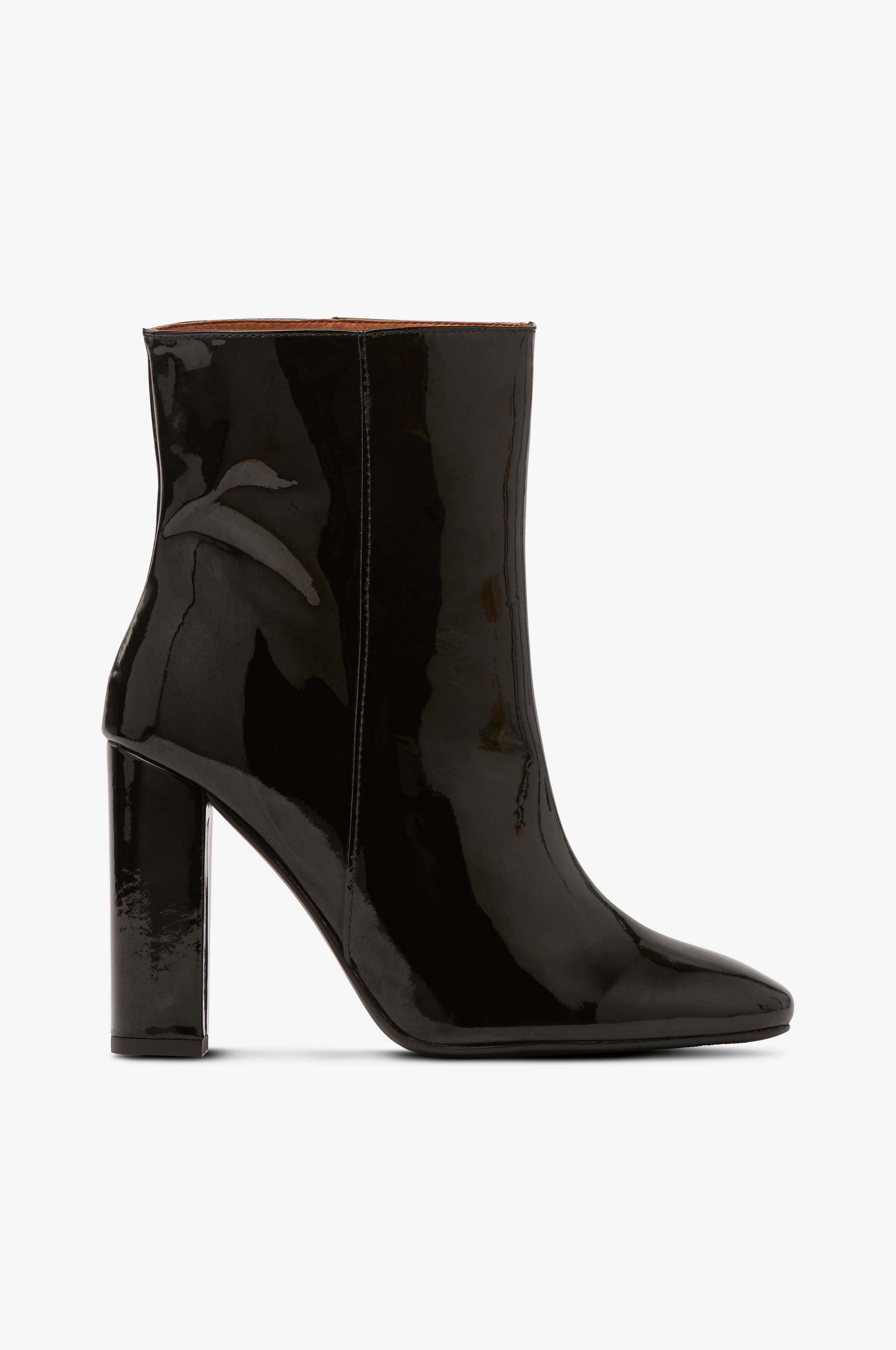 Boots Joan Patent från Henry Kole med lite högre skaft, rund tå och hög, lackad klack. Gjorda i lackat läder med mjukstoppad skinninnersula. Skafthöjd 13 cm, klackhöjd 9,5 cm.