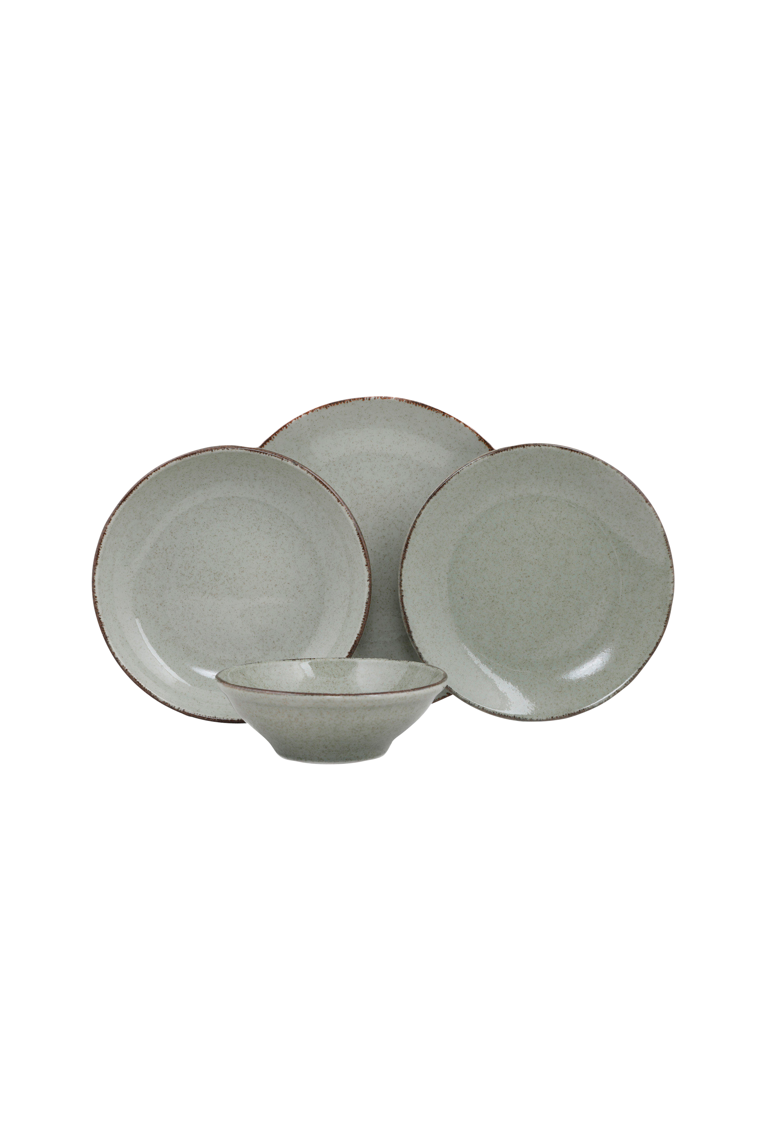 100% PorslinStor tallrik: 25 x 25 x 3 cm (6 st)Djup tallrik: 21 x 21 x 4 cm (6 st)Skål: 16 x 16 x 5,5 cm (6 st)Desserttallrik: 21 x 21 x 2,5 cm (6 st)Tål maskindisk.Tål mikrovågsugn.