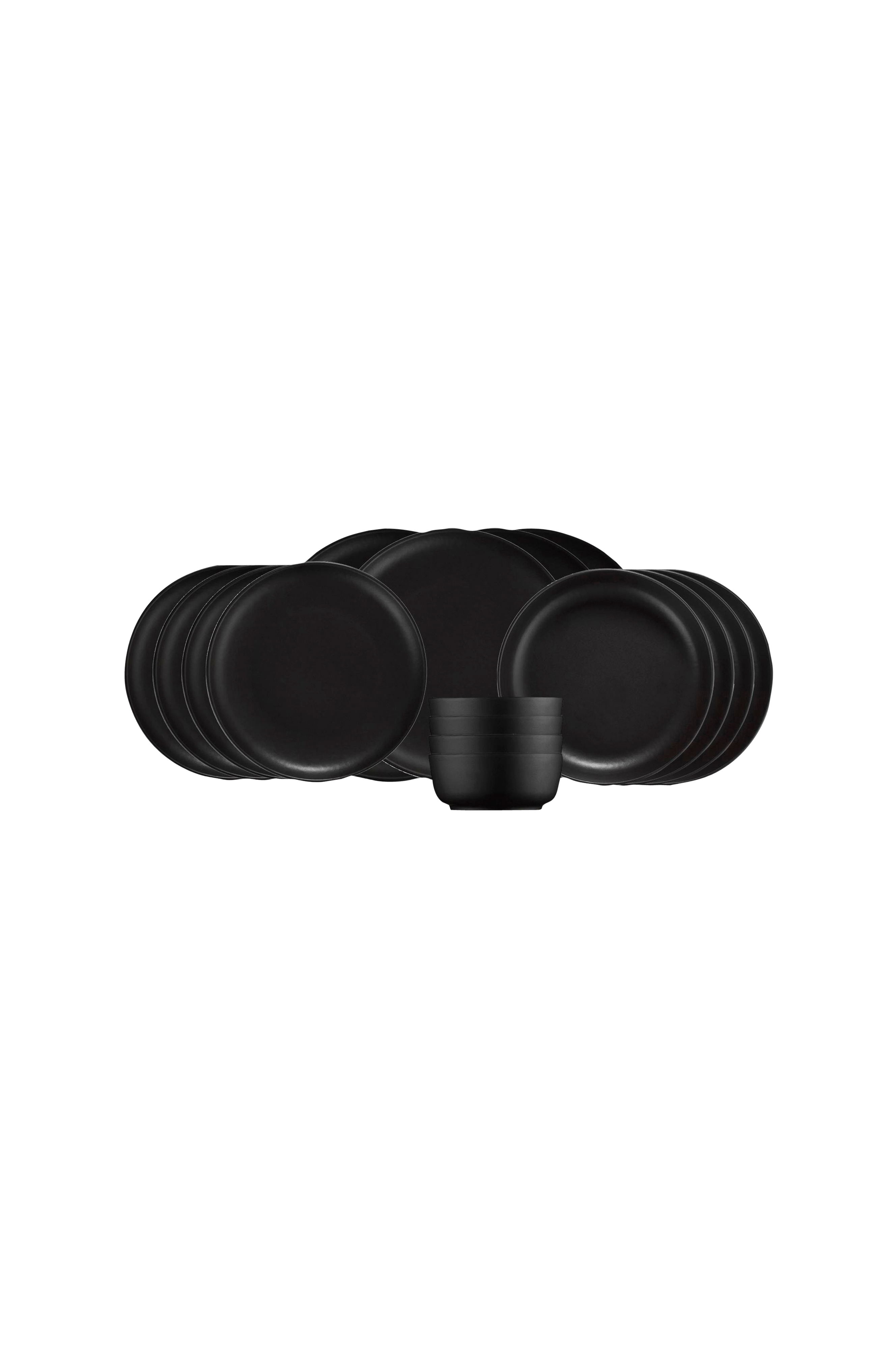 100% porslinserveringstallrik: 27 x 27 x 2,5 cm (4 st)djup tallrik: 19 x 19 x 5 cm (4 st)tårtfat: 20 x 20 x 2,5 cm (4 st)skål: 15 x 15 x 4,5 cm (4 st)