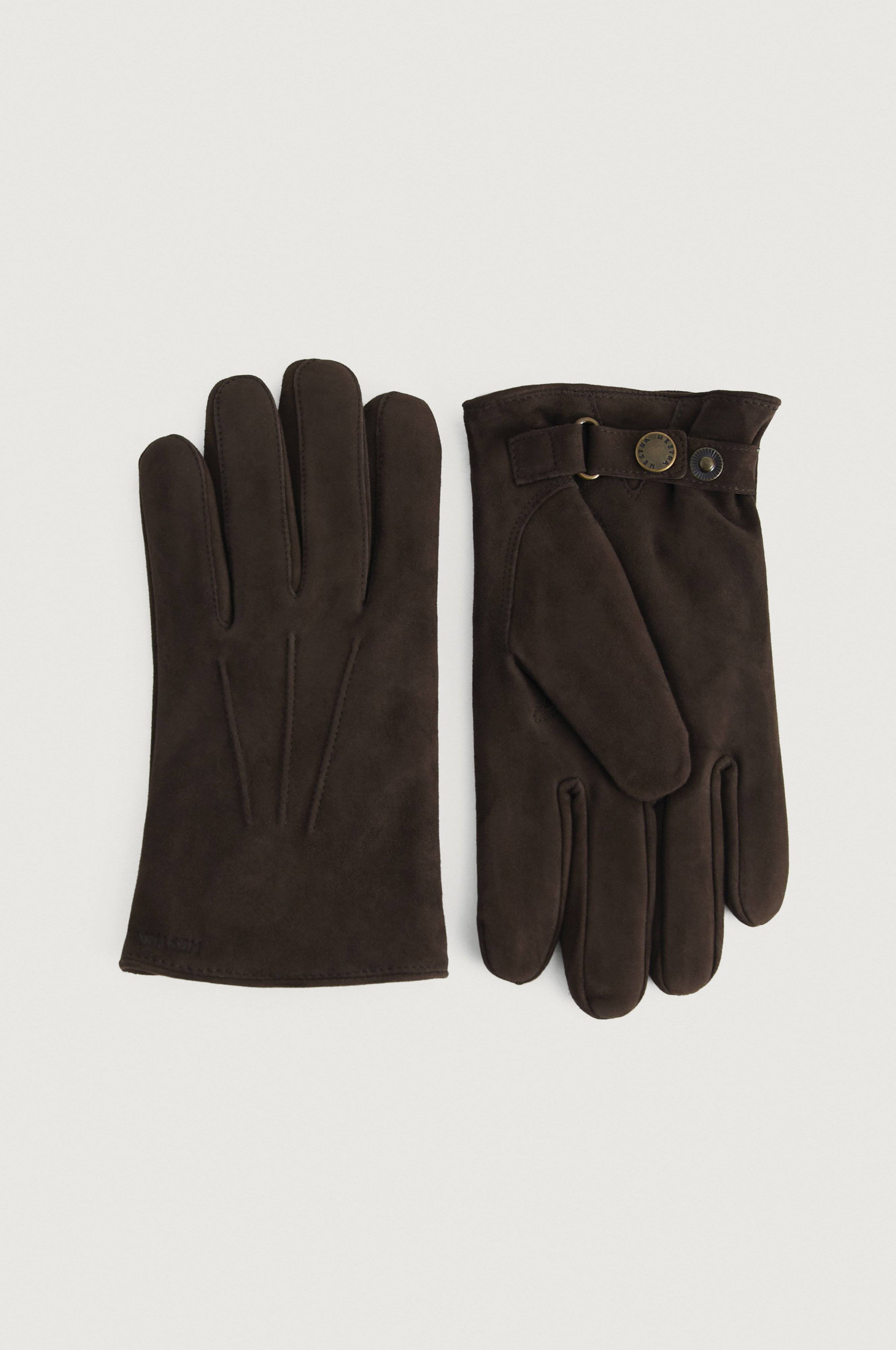 Mockahandskar Robert från Hestra i tunn, mjuk lammocka med varmt, stickat ullfoder som isolerar generellt bra ned till fem minusgrader. Dekorationssömmar på ovanhanden och spänne med tryckknappar runt handleden.