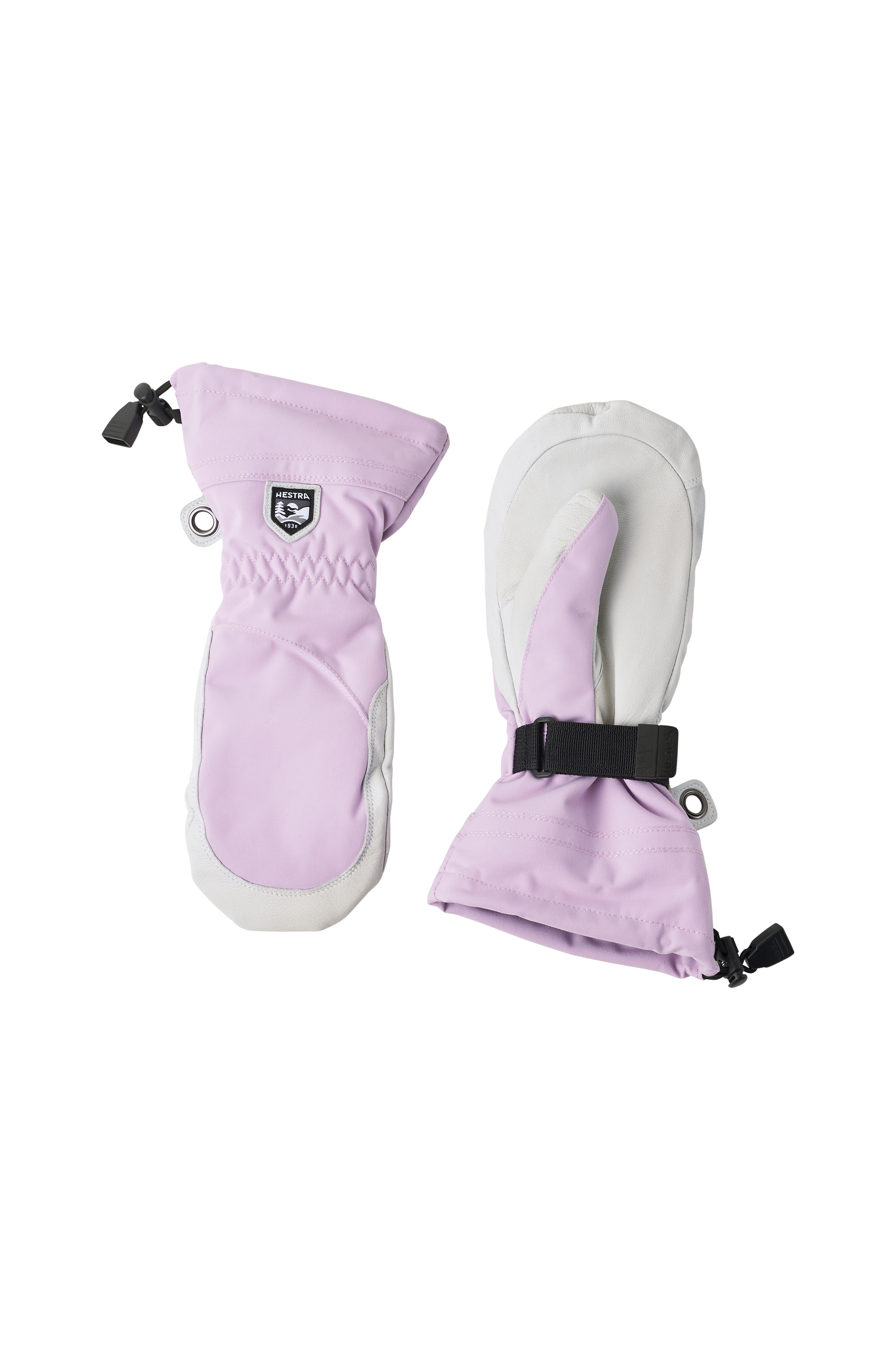 En varm och funktionell 3-fingers skidhandske med nätt skärning för att passa tjejers smalare händer. Sydd i en slitstark och vädertålig kombination av getskinn och trelagers polyamidväv. Fodret är lätt att ta ur och torka, eller byta mot en tunnare innerhandske när aktivitetsnivån stiger och du hajkar uppför. I lössnö ser den långa kragen tillsammans med snölås och handledsjustering till att hålla snön på utsidan och värmen inuti handsken. En handledsrem minskar risken för att du tappar handsken. Dessutom kan du hänga upp handskarna med öppningen neråt med den medföljande karbinhaken – praktiskt för att undvika att handsken fylls av snö om du jobbar med enbart en tunnare liner på händerna. Slitstarkt Bemberg foder i fleece av 100 % polyester, med mjuk och behaglig borstad yta. Isolering: G-Loft.