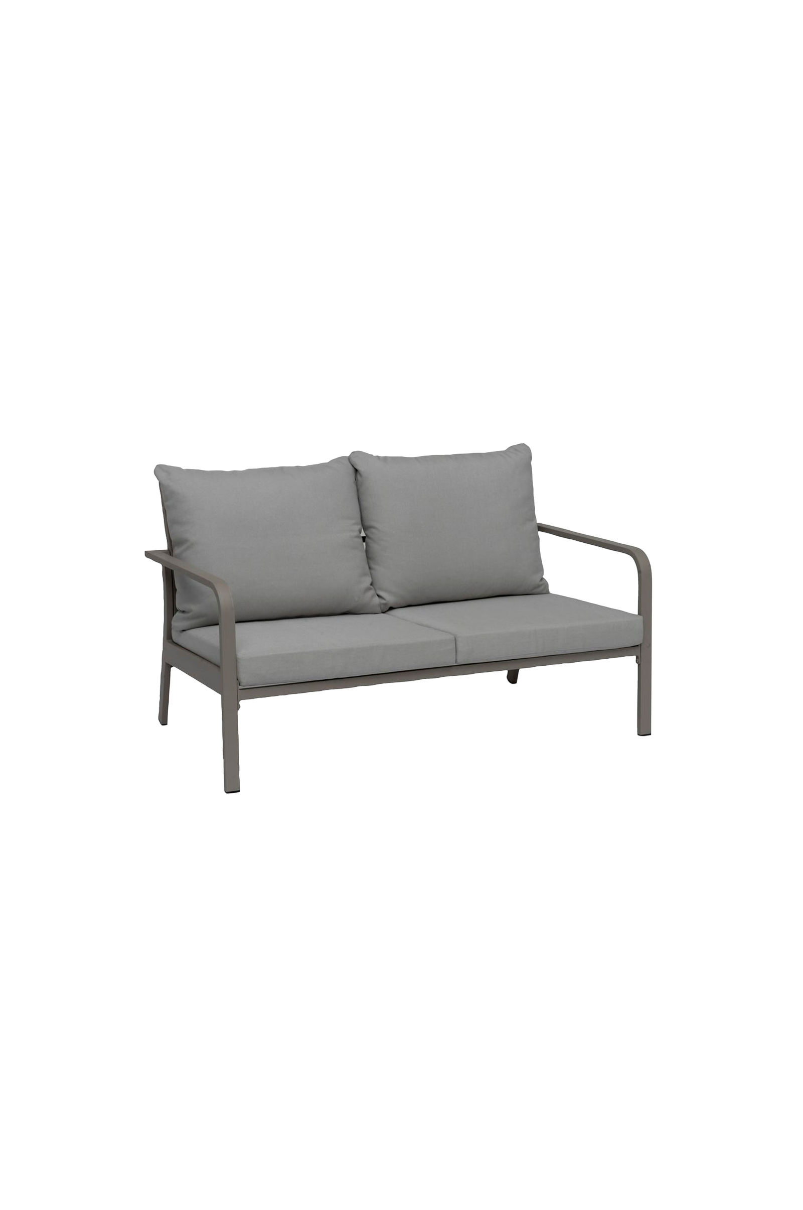 Generös soffa som med sin lätta design ger ett stilrent och modernt uttryck. Tillverkad i aluminium med kuddar i fjädergrå olefin. Dynorna är skräddarsydda för varje komponent. Avtagbart överdrag, handtvätt 30 grader.
