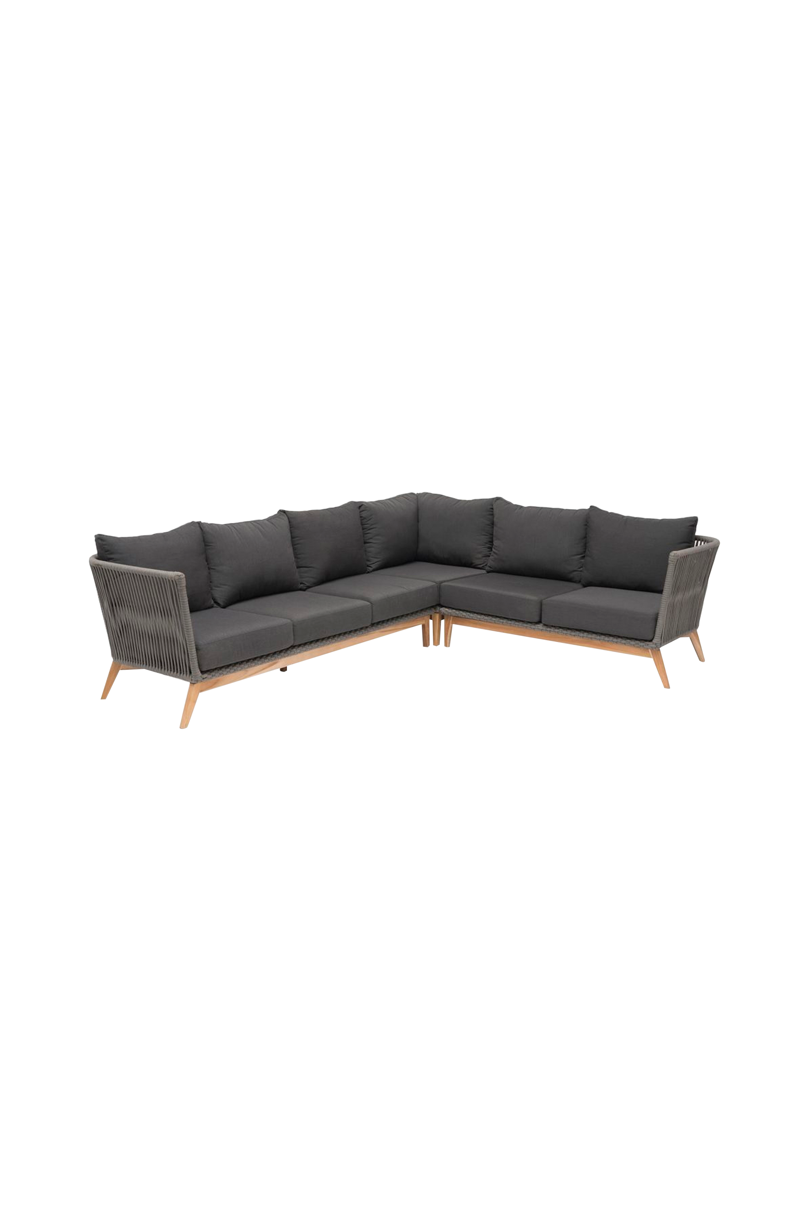 En stilren hörnsoffa tillverkad av teak och beige korgremsor i ett fint mönster. Bekväm med beige sunproof® dyna i olefine som ingår. Removable cover, hand wash.