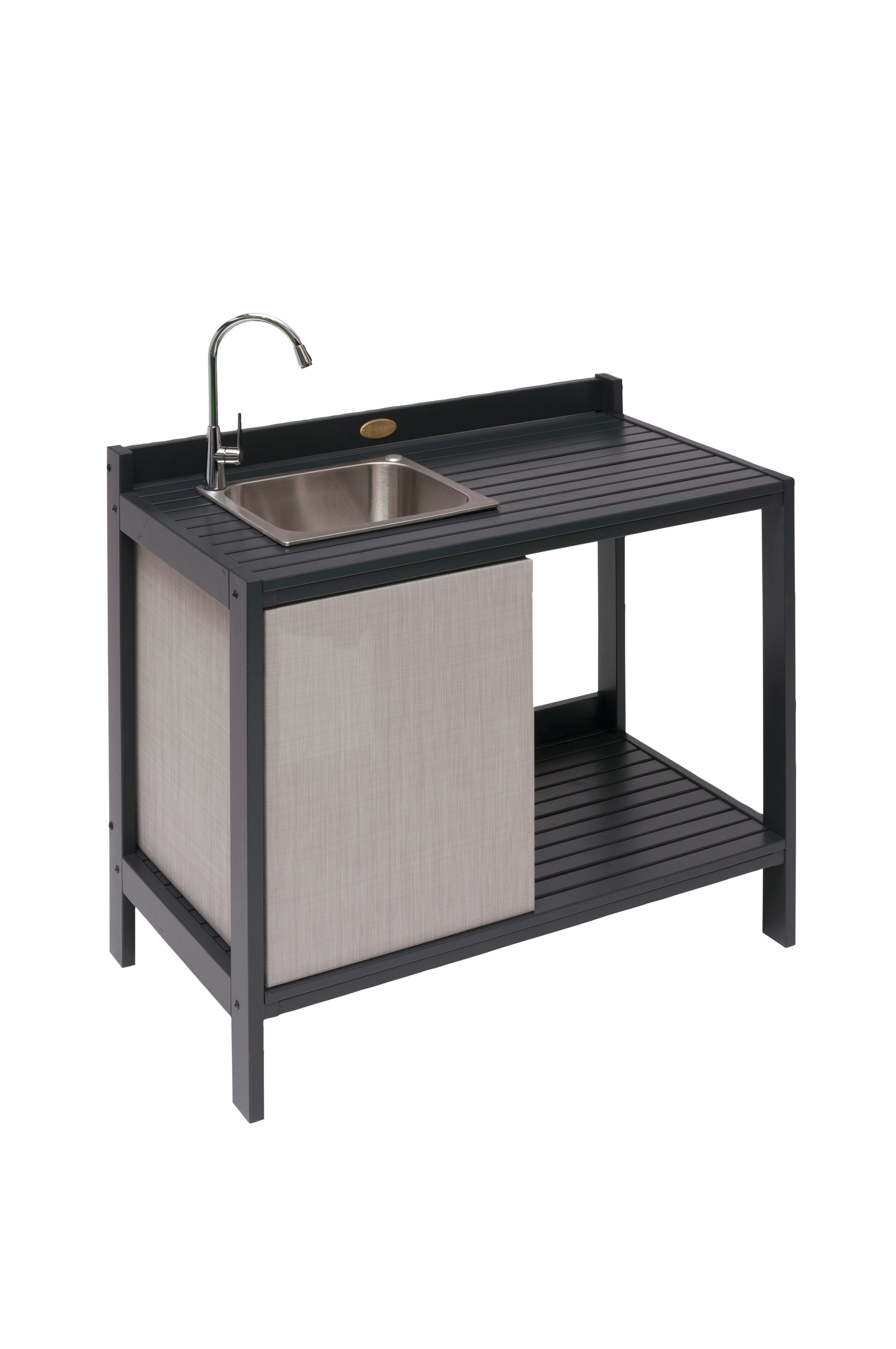Läckö Utekök Orkangrå Inkl. Vask/Kran rostfritt Stål/Textileneskydd*. En garanterad succé till sommarens festligheter. Trämöbeln är svensktillverkad och produceras med FSC-certifierad tålig kärnfuru från Norrland. Material: Furu Djup: 61 cm Höjd: 98 cm Bredd: 110 cm Montera själv.
