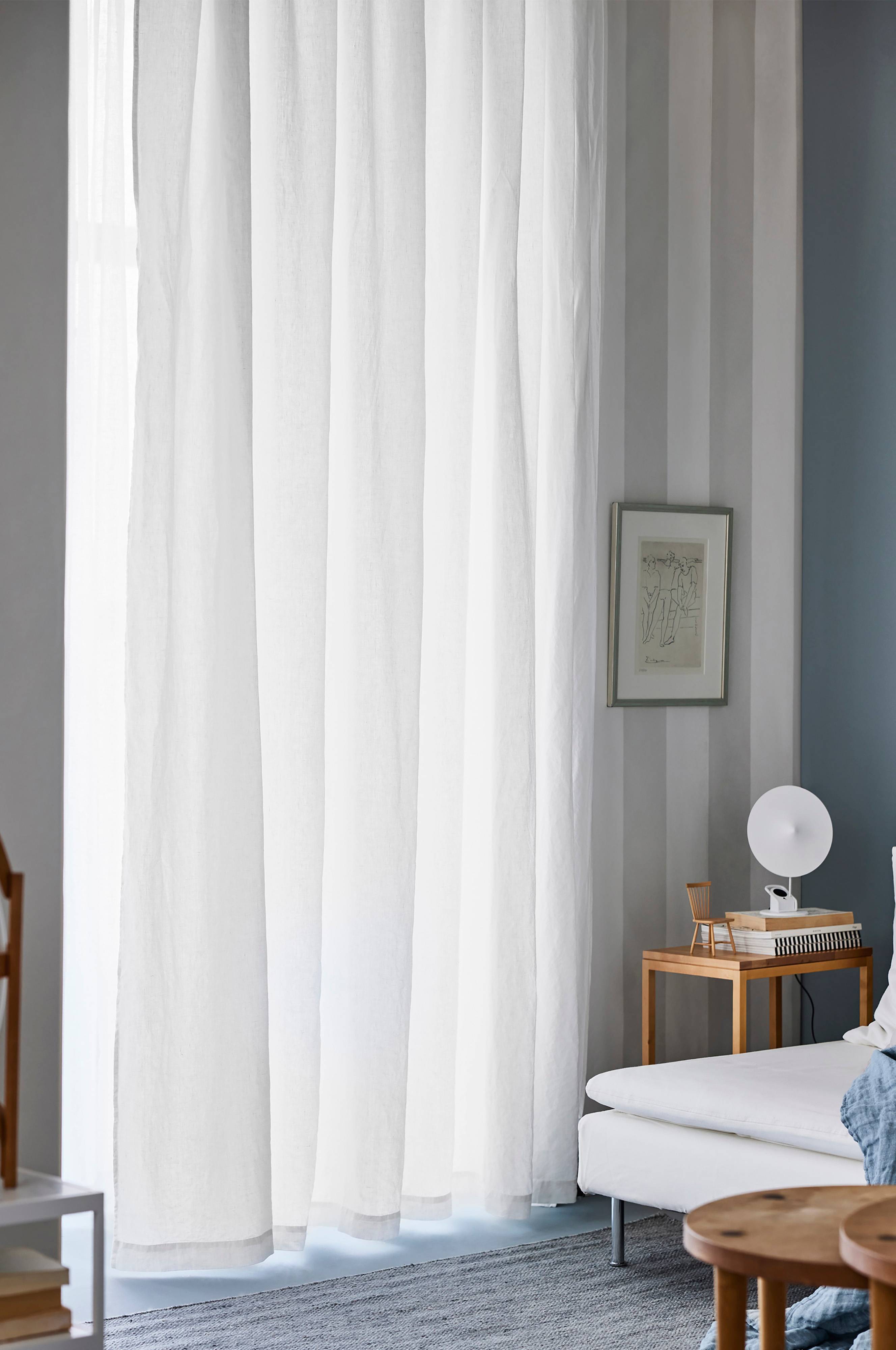 Sunrise Gardinen är tillverkad av ett fint vävt linne som är mjukbehandlat och tvättat, vilket ger ett mjukare tyg med en något skrynklig look. Tyget är tunt men tätt och passar i hemmets alla rum. Gardinen är lätt att använda då den inte behöver strykas efter tvätt. Sunrise gardin finns i både enkel och dubbel bredd. Gardin med rubrikband och kanal. Säljs i förpackning om 1. Skonsam tvätt 40°C, krympning 1-2%.