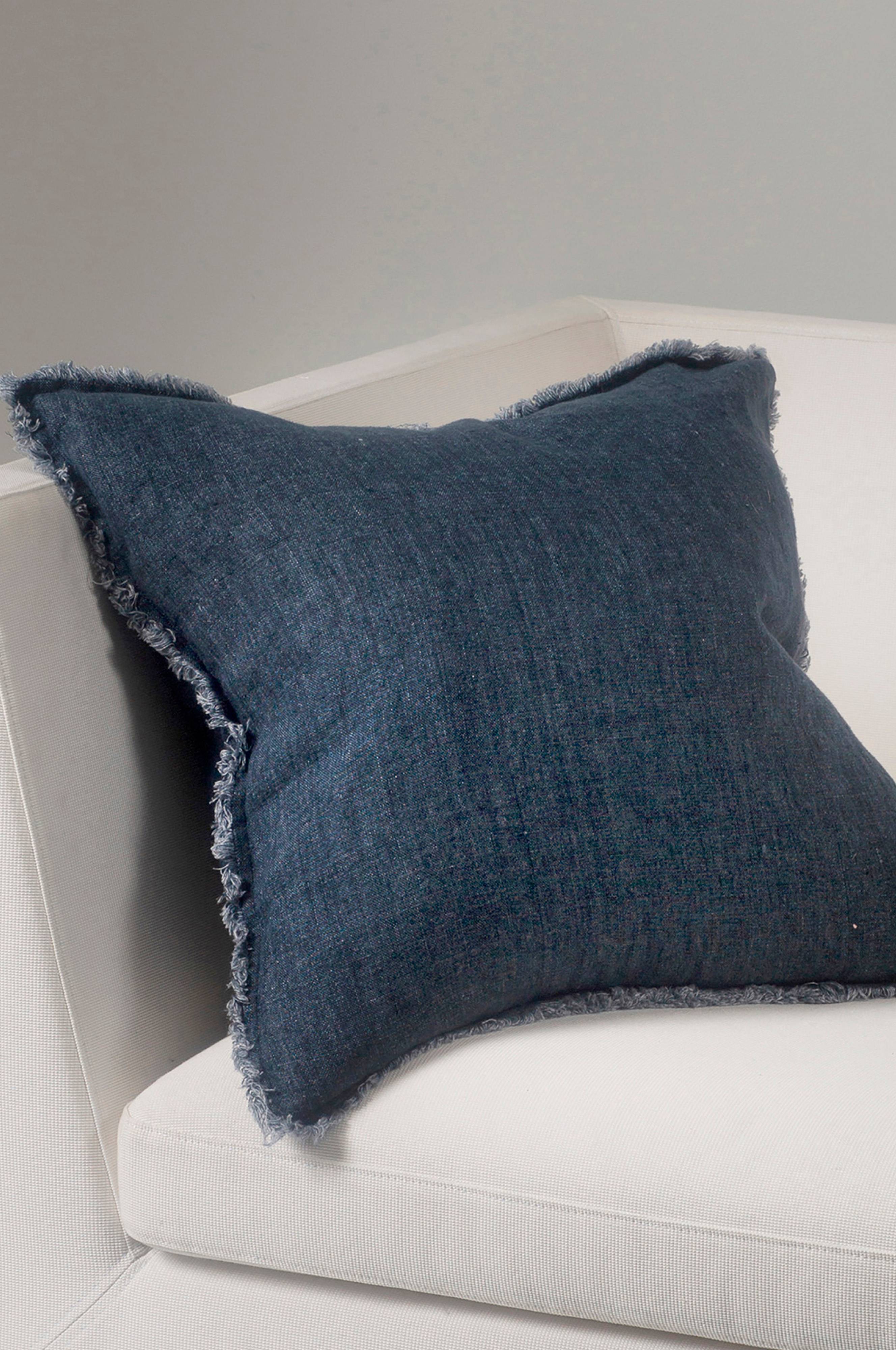 Levelin är en kudde i tvättat, mjukt rent linne, vävt i melange-garn. Kudden har fransar på alla sidor och en överlappande öppning på baksidan. Maskintvätt 40°C
