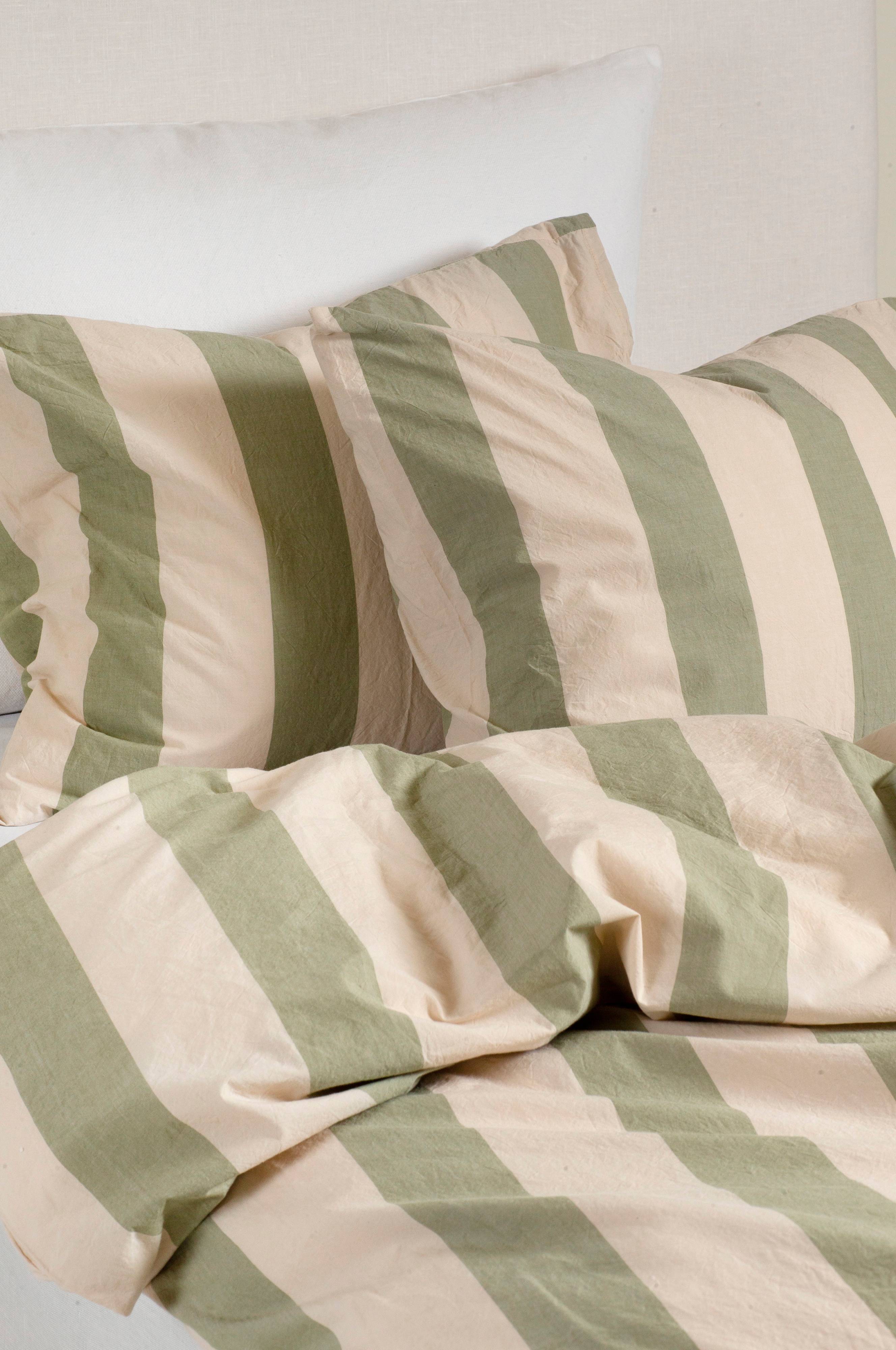 Daydreamer är Himlas blockrandiga sänglinneserie i krispig och sval percale. Tillverkad av kammad bomull med en trådtäthet på 200 Tc och tvättas efter sömnad. Örngott med fliköppning på baksidan. Produkten är certifierad med Oeko-Tex. Maskintvätt 60°C, Krympning 1-3%.
