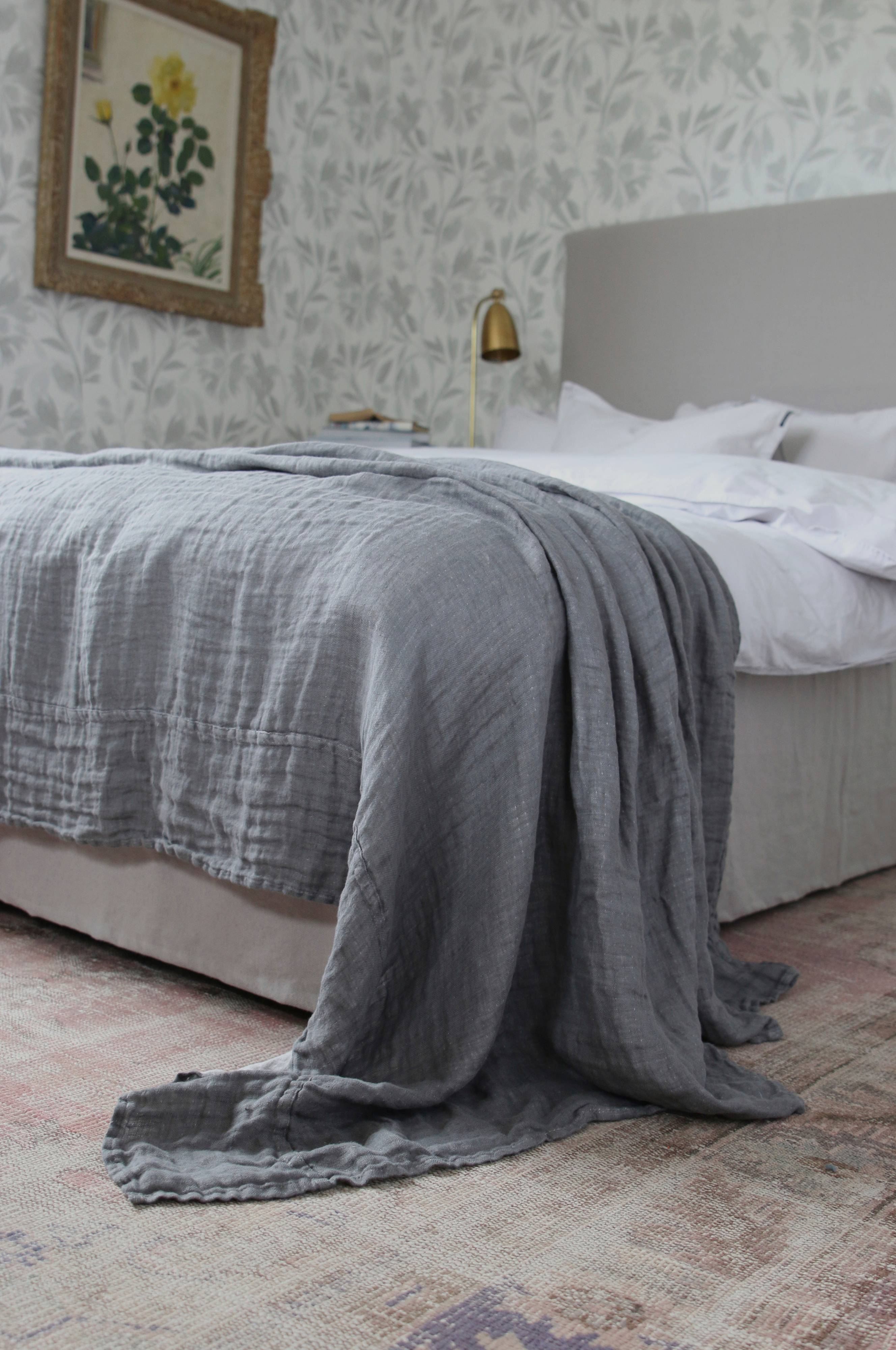 Överkast i bondat dubbelvävt linne, tvättat för att få en skrynklig look. Överkastet har olikfärgade, kontrasterande sidor, vilket gör det mer iögonfallande. Den krusade strukturen ger ett avslappnat och inbjudande uttryck och är lätt att slänga på sängen. Hannelin överkast finns för enkelsäng och dubbelsäng och finns i flera färger och fungerar utmärkt att kombinera med plädar och kuddar från samma serie för att skapa en riktigt mysig säng. Överkastet har dubbla sömmar längs varje sida; på storlek 160x260 är sömmen placerad 15 cm från sidokanten och på storlek 260x260 är sömmen placerad 65 cm från sidokanten. Maskintvätt 40°C skonsam tvätt, torktumling på låg värme, tvättas separat. Kan krympa 1-2%.
