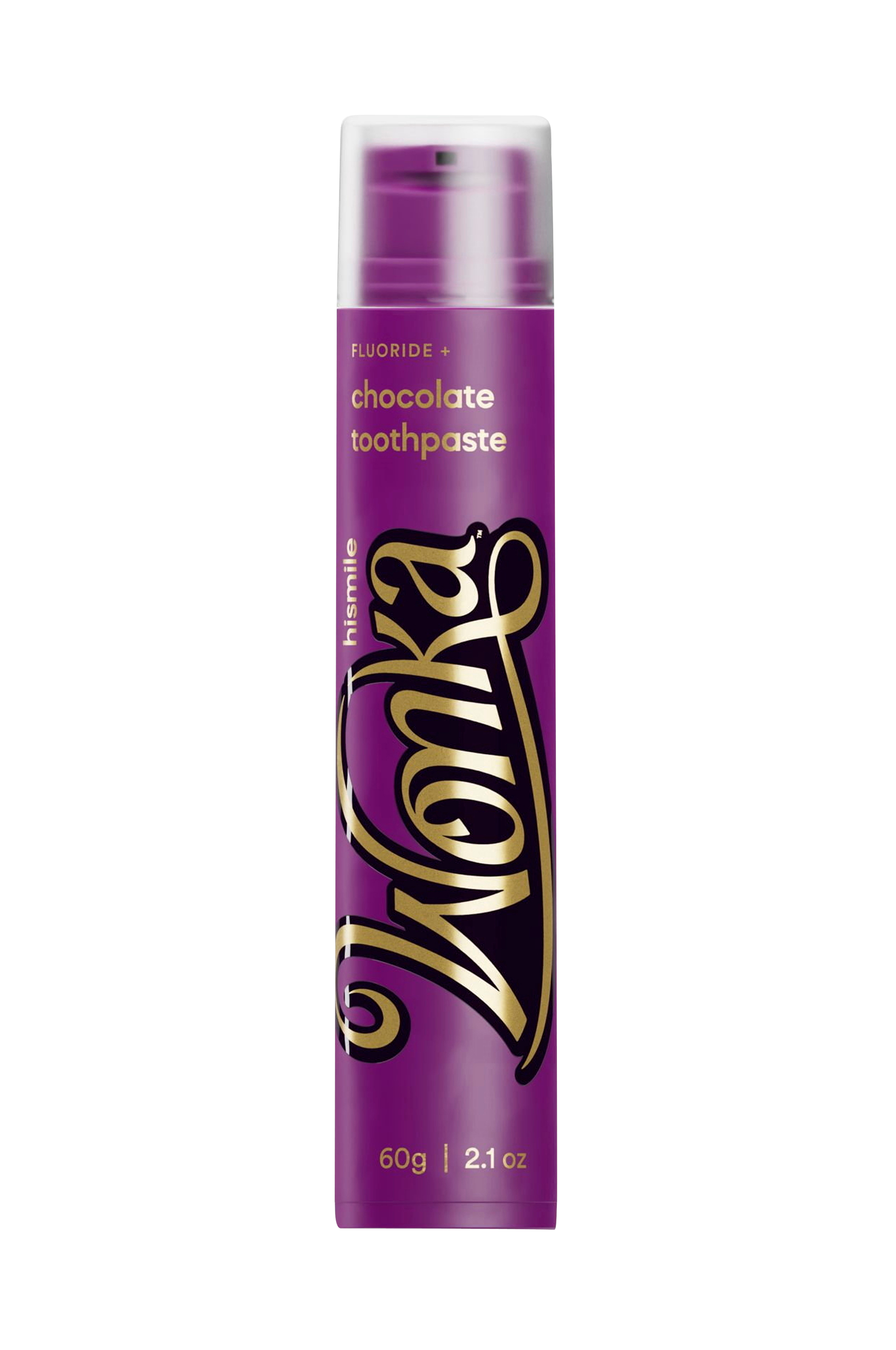 "Wonka Chocolate Toothpaste" från Hismile ger en fängslande blandning av sammetslen kakao med en uppfriskande hint av mint. Ge dig ut på en förtrollande resa för att skämma bort dina tänder, låt den krämiga chokladessensen i denna tandkräm transportera dina smaklökar till en sagovärld. Vår Fluorid+-formula är inte bara välsmakande, den har även kliniskt bevisade ingredienser som förebygger karies, minskar känslighet och ger friskare tandkött, vilket förbättrar munhälsan. Njut av drömmen om en tandkräm med fyllig choklad som revolutionerar tandvården.