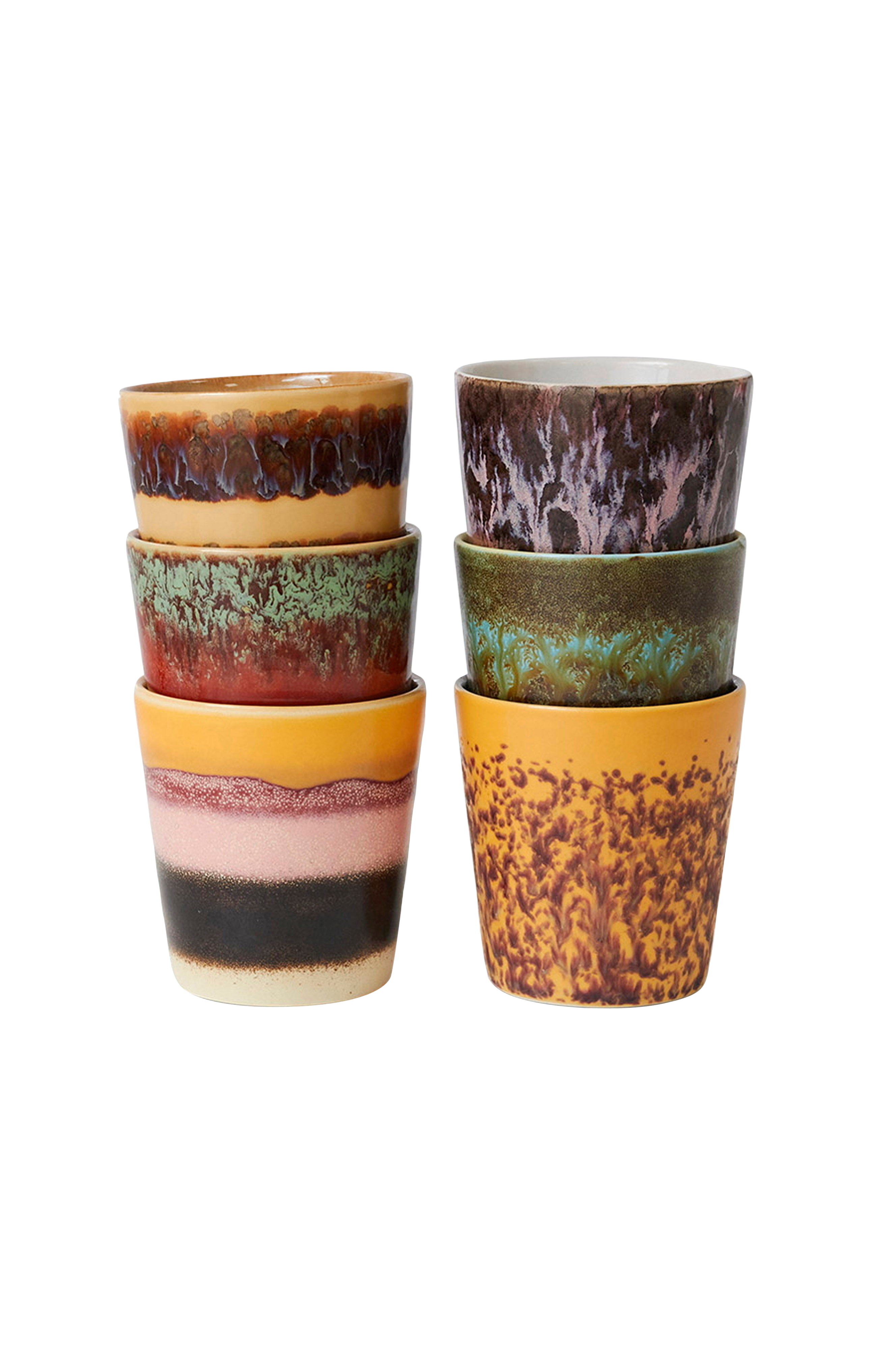 70-tals keramiken kan vara inspirerad av det spännande 70-talet - den här gången har ytan en naturlig bas och påminner om råa kustlinjer. Kollektionen kombinerar ikoniska former med nya tillägg och kommer att tilltala dem som uppskattar rå enkelhet. Den har blivit en av våra klassiker - kaffemuggen har en minimalistisk form som är lätt att stapla. Det som gör den här muggen så populär är dess mångsidighet; den är den perfekta formen för americanos, flat whites eller till och med en blygsam cappuccino.