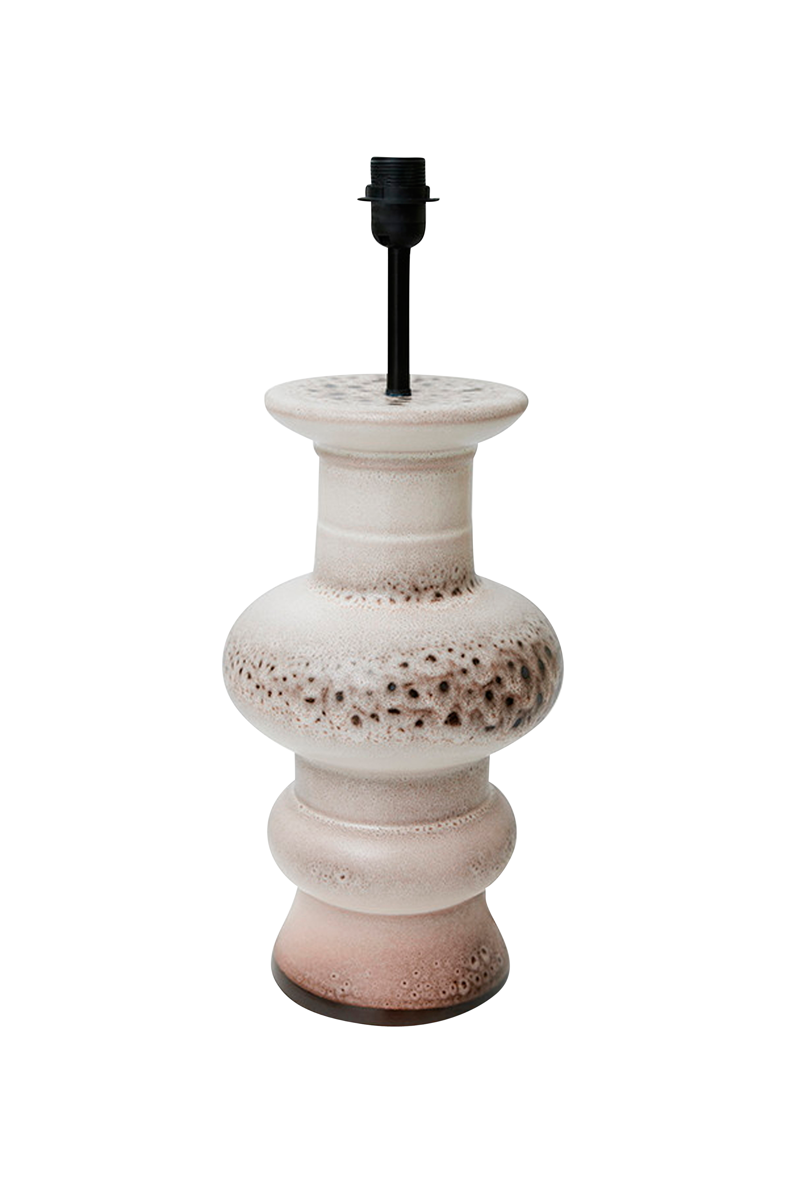 Lampfot gjord av stengods med en reaktiv glasyr. Kombinera foten med en modern lampskärm eller gå hela vägen och välj ett funkigt blickfång. Levereras med europeisk plug. Diameter 23,5 cm. Sladdlängd 1.72 m.
