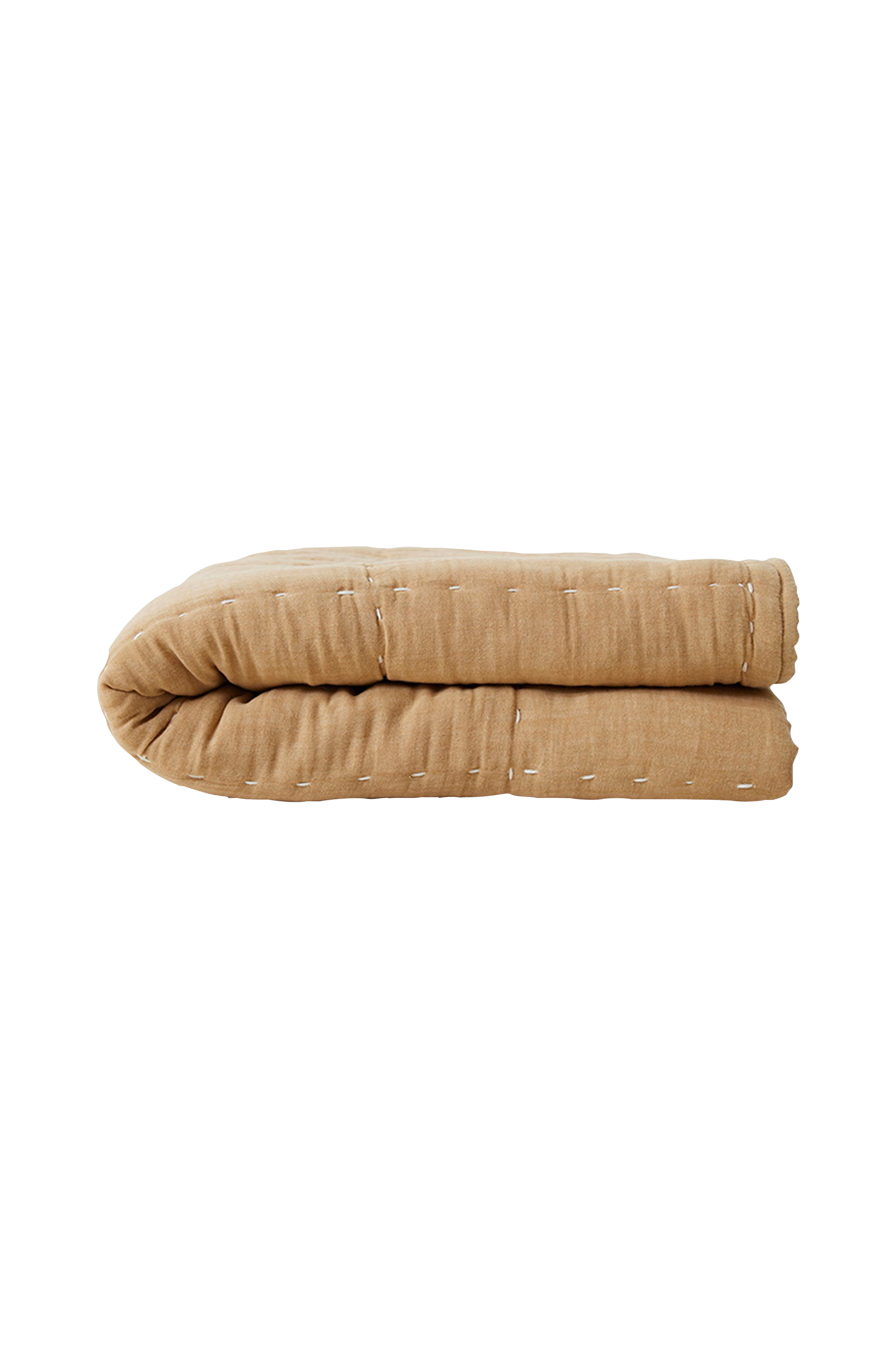 Quiltad pläd, med ett tyg som gör den till en skön mjuk filt att ligga på eller under. Den naturliga färgen förvandlar din soffa till en välkomnande avslappningsplats. Framsidan består av 50% bomull och 50% lin. Baksidan är av 100% bomull.