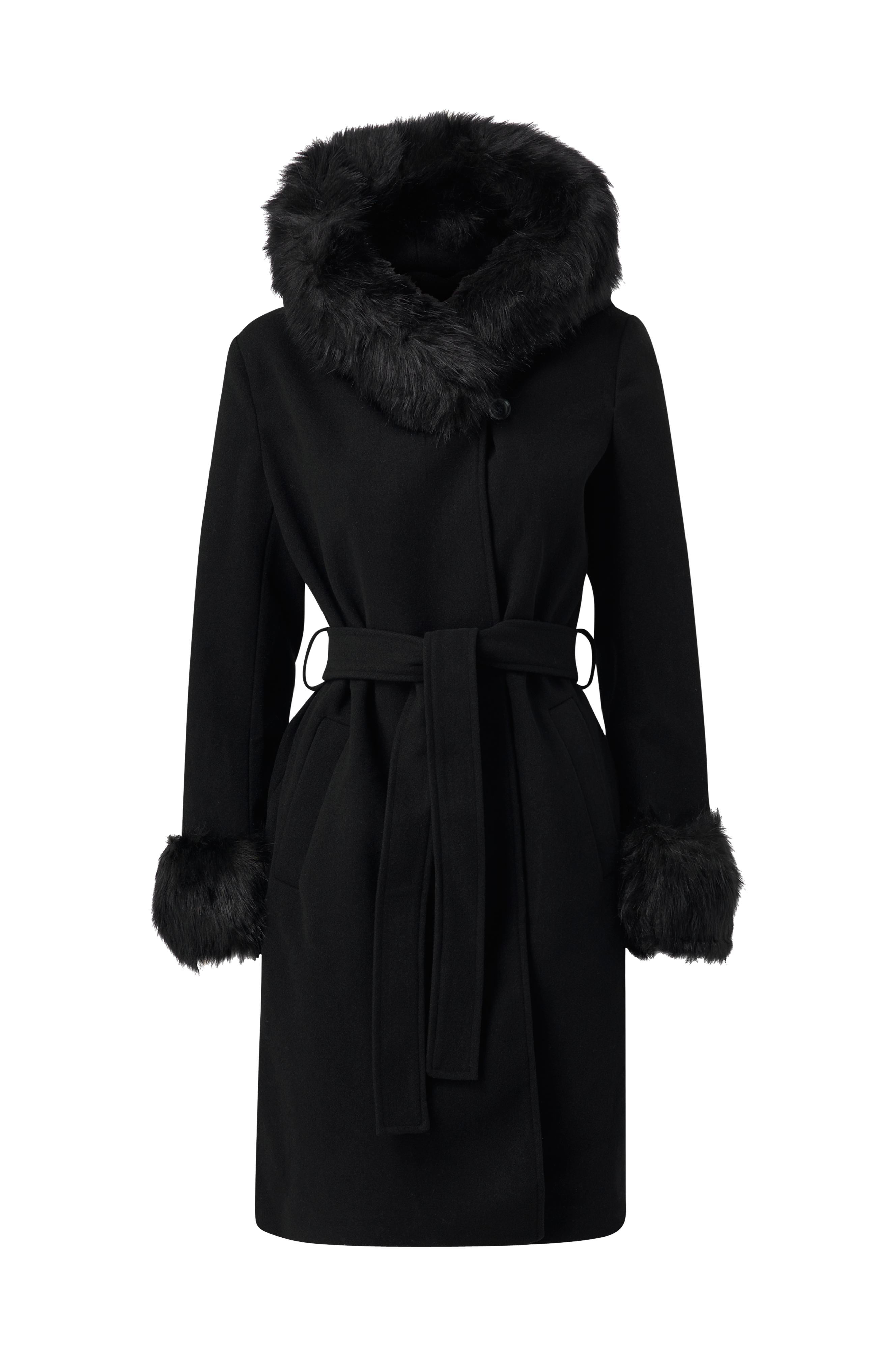 • Kappa med fuskpäls i ärmsluten och på huvan• Stilren modell• Två fickor• Knytskärp i midjan• Fast huva med avtagbar fuskpälskant• Liten metallogga på ena ärmen• Längd: 97 cm i storlek 38