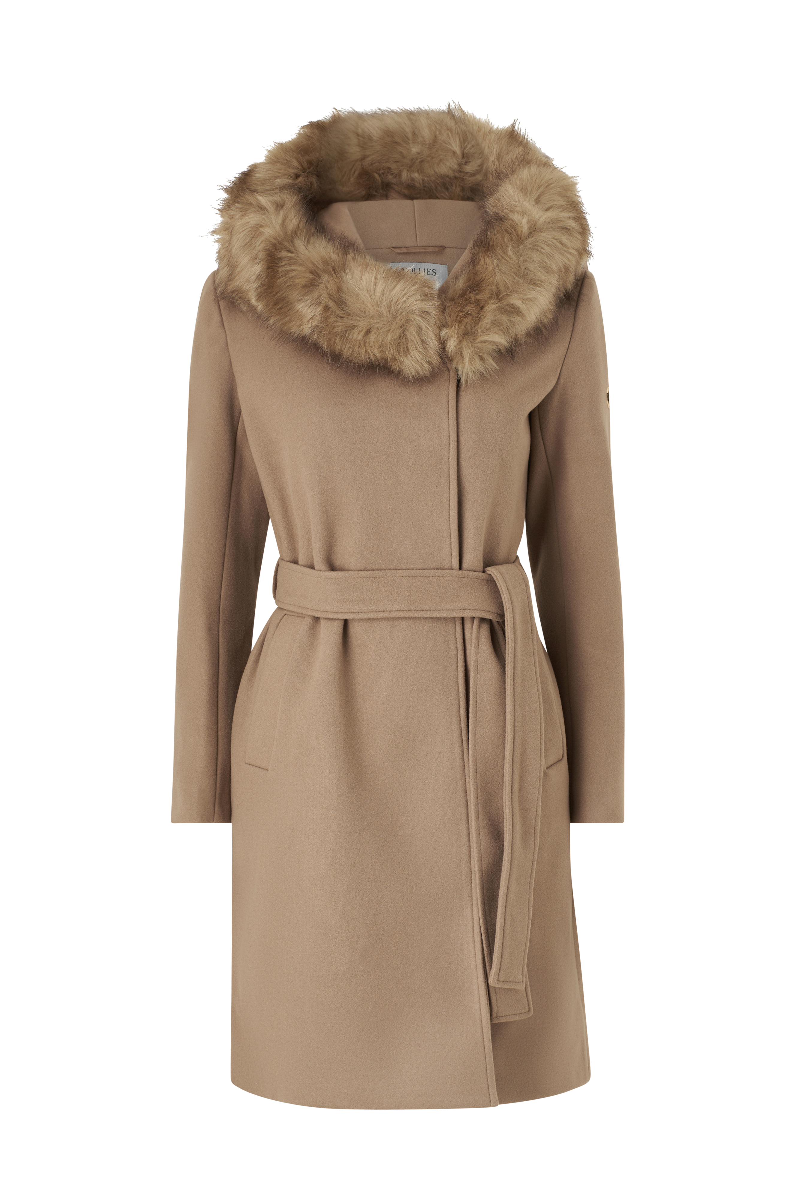 • Rymlig huva med avtagbar kant i mjuk fuskpäls• Omlottdesign med invändigt knytband och knapp upptill• Avtagbart knytskärp i midjan• Logga i guldfärgad metall på vänster ärm• Sidfickor• Slätt, vävt foder• Längd: 97 cm i storlek 36