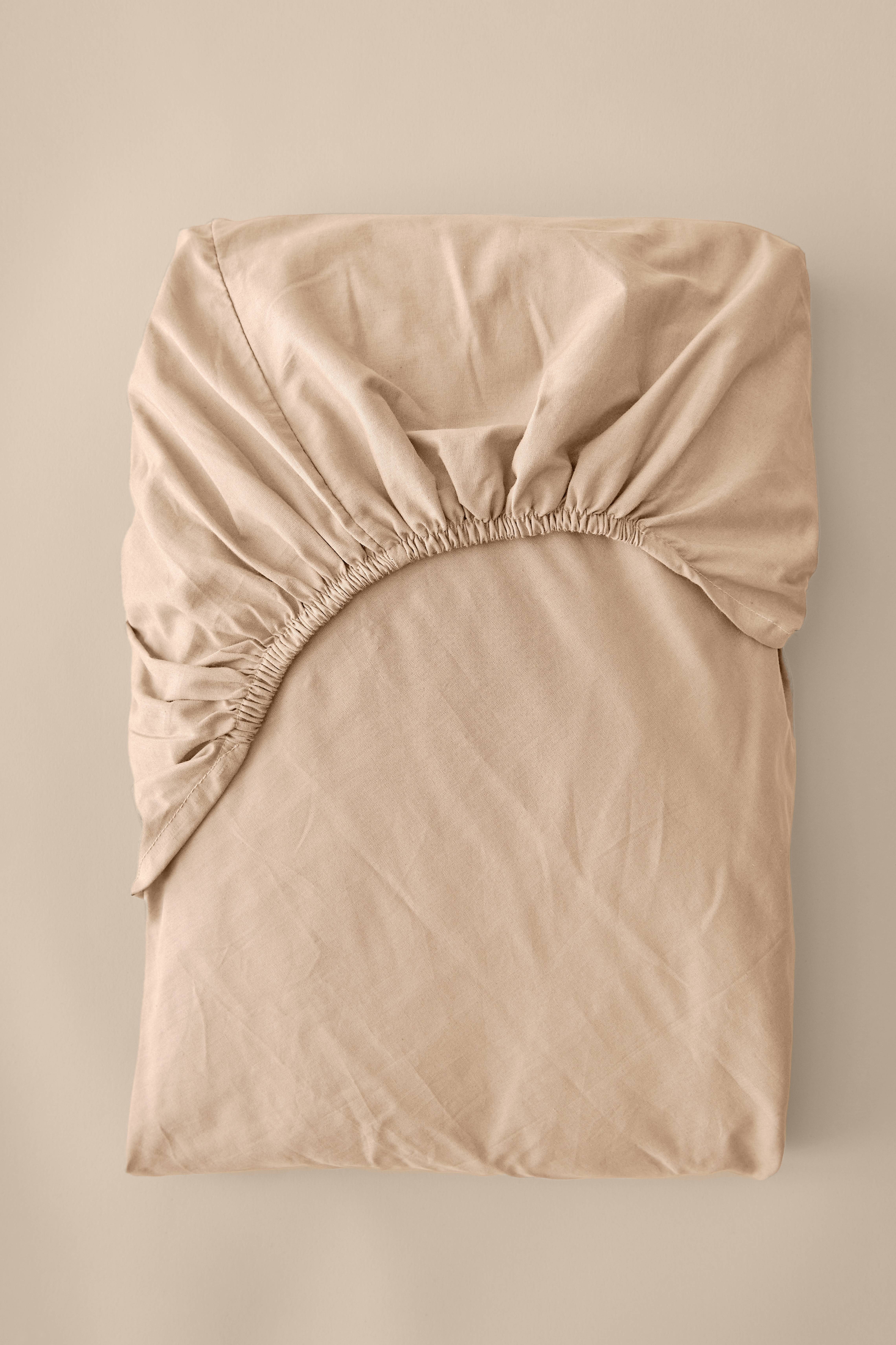 Dra på-lakan i mjuk bomull. Trådtäthet 144 TC. Resårband i hörnen. Invik 25 cm. Passar madrasser upp till 10 cm.