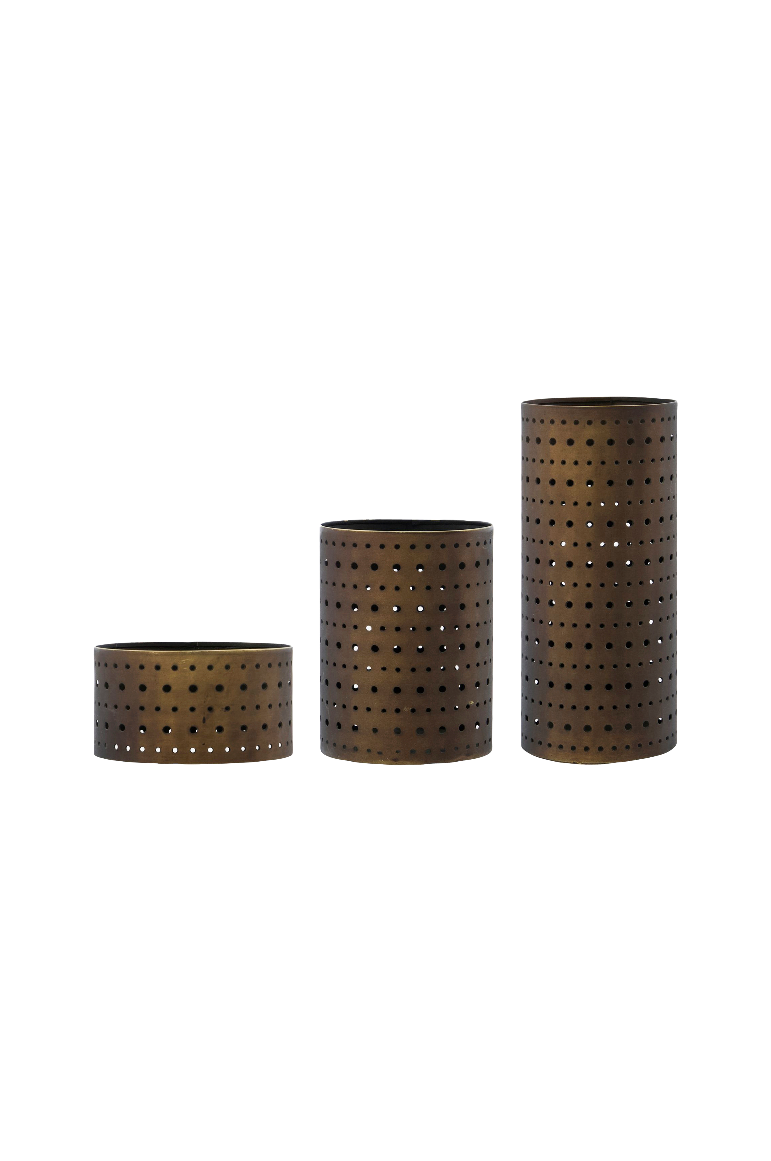 Dekorera och organisera skrivbordet med det här setet med 3 hållare från house doctor. Från pennor till gem, saxar och borstar samlar de kontorsmaterialet på ett elegant sätt tack vare finishen och utskärningarna. Om och när du vill göra om och flytta runt lite kan du använda hållarna som värmeljushållare eller dekoration.