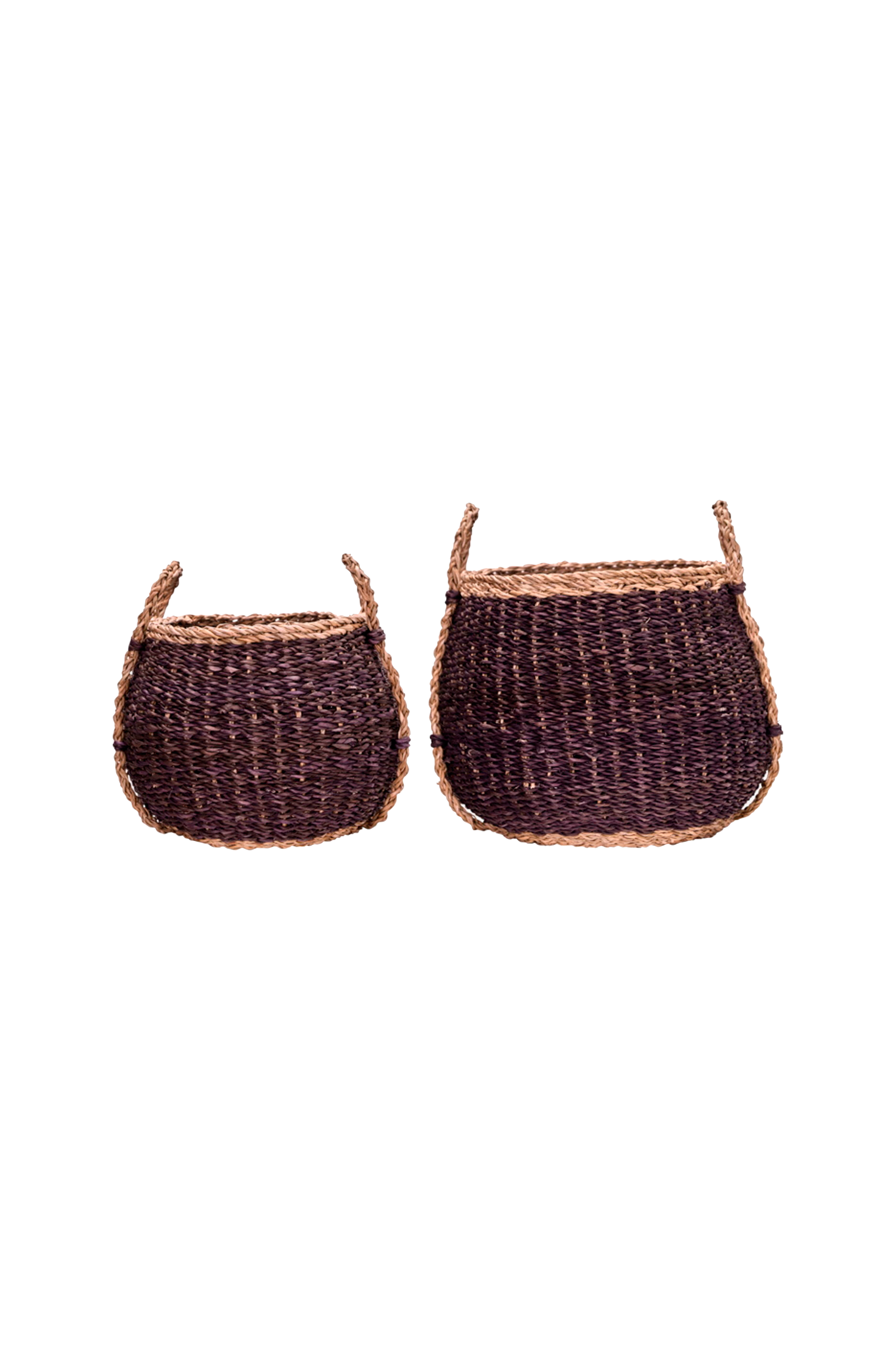 Ge ditt hem en taktil boost med detta par handgjorda förvaringskorgar, tillverkade av naturligt sjögräs. Deras runda form och praktiska handtag tillför både charm och funktion, och förvandlar förvaring till en stilfull detalj var som helst - lägg in filtar i vardagsrummet, använd dem för hattar och halsdukar i hallen eller visa upp dem som en dekorativ accent i sovrummet. Den djupa, varma färgen sticker ut samtidigt som den smälter in i både ljusa och mörka interiörer, vilket gör att varje hörn känns inbjudande och genomtänkt. H: 30 cm