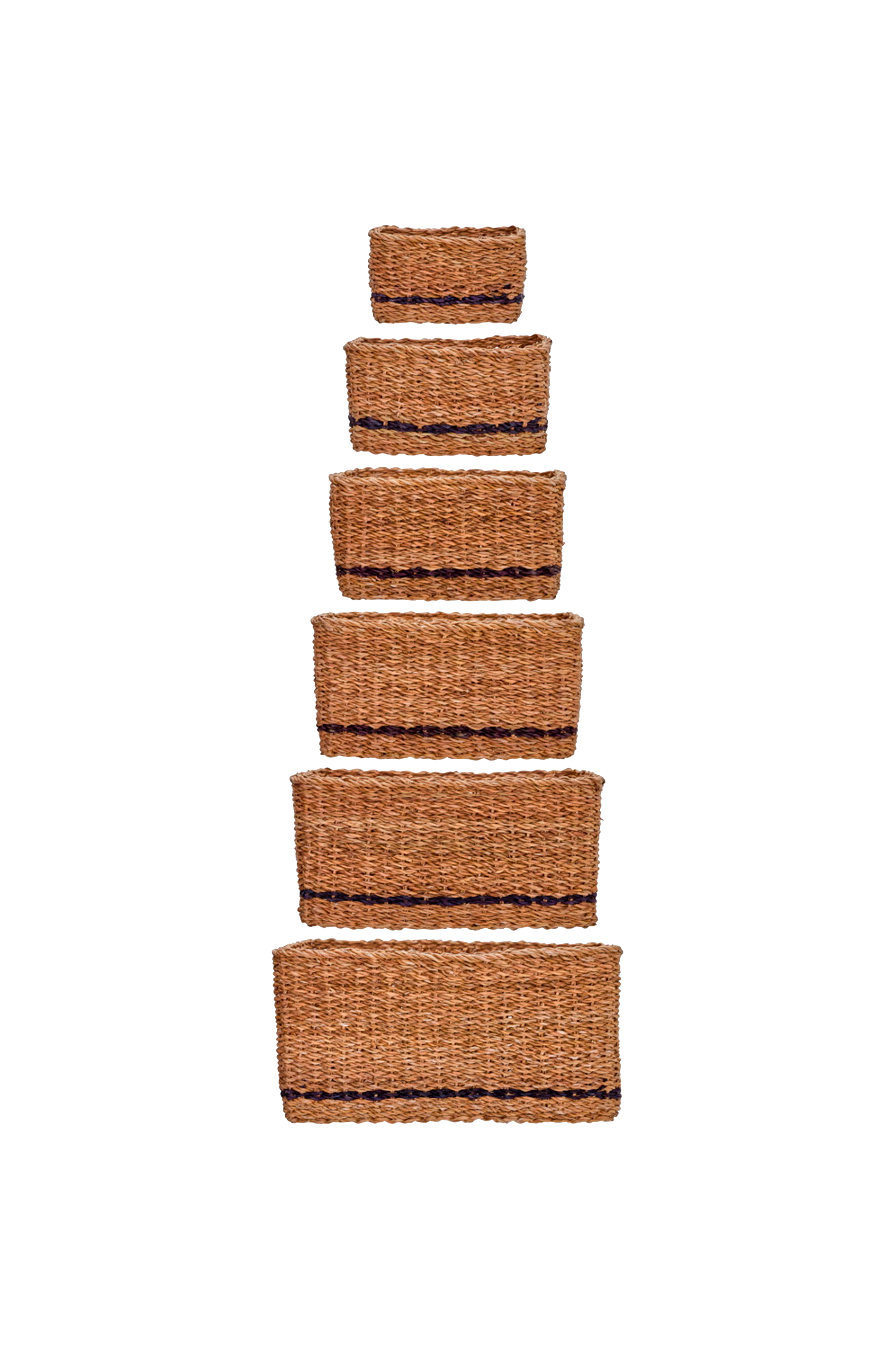 Organisera vardagens nödvändigheter och ge ditt hem en varm känsla med dessa handgjorda förvaringskorgar. Det naturliga sjögräset kompletteras av en enda svart rand som ger varje korg en subtil stil, och den fyrkantiga, praktiska formen gör det enkelt att hålla ordning i alla miljöer. Använd dem i hallen för nycklar och handskar, i vardagsrummet för tidningar eller i badrummet för handdukar - låt din kreativitet styra. H: 11,5, 14, 16, 18, 20, 22 cm