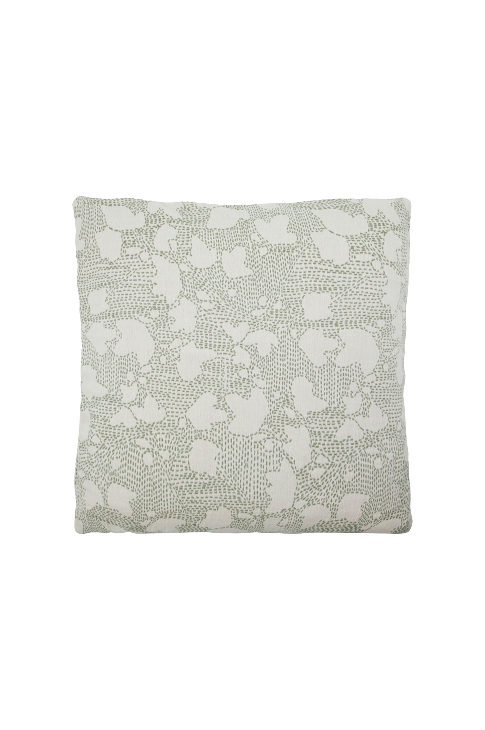 Detta handgjorda kuddfodral från HDMori är vävt av jacquard i ren bomull med ett abstrakt bladmotiv. Dess texturerade, tvåfärgade design ger en lugn, naturlig känsla till soffor, fåtöljer eller sängar. 50x50 cm.
