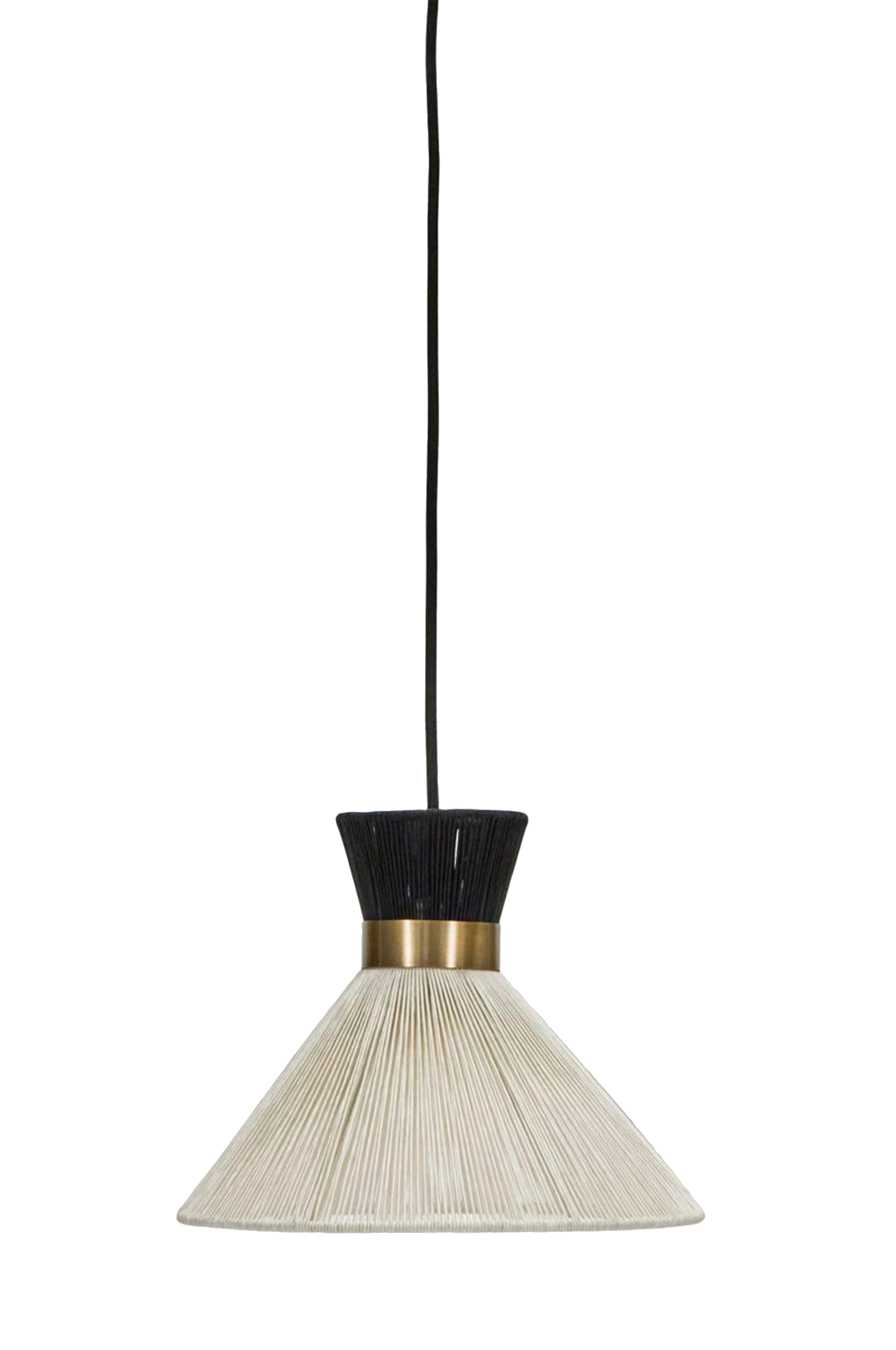 Förvandla din interiör med HDCord pendellampa, en konstnärlig fusion av robust järn och elegant mässing, accentuerad med en skärm som är intrikat lindad i glänsande benvita och svarta trådar. Denna sofistikerade design integrerar sömlöst vintage charm med modern lockelse, perfekt för alla inredningsstilar. Förhöj din inredning med den tidlösa elegansen hos HDCord pendellampa.