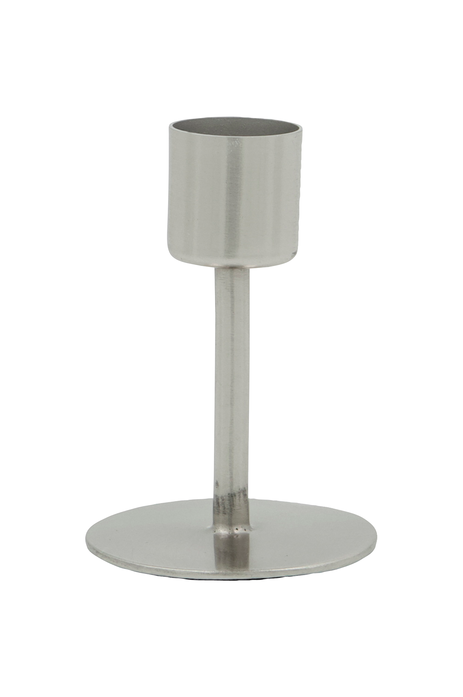 Ge ditt hem en lugn, skulptural känsla med denna ljusstake i järn. Den minimalistiska designen och den borstade silverfinishen ger en raffinerad touch till ditt konsolbord eller hylla och skapar en diskret men elegant fokuspunkt. H 7 cm, dia 5 cm.