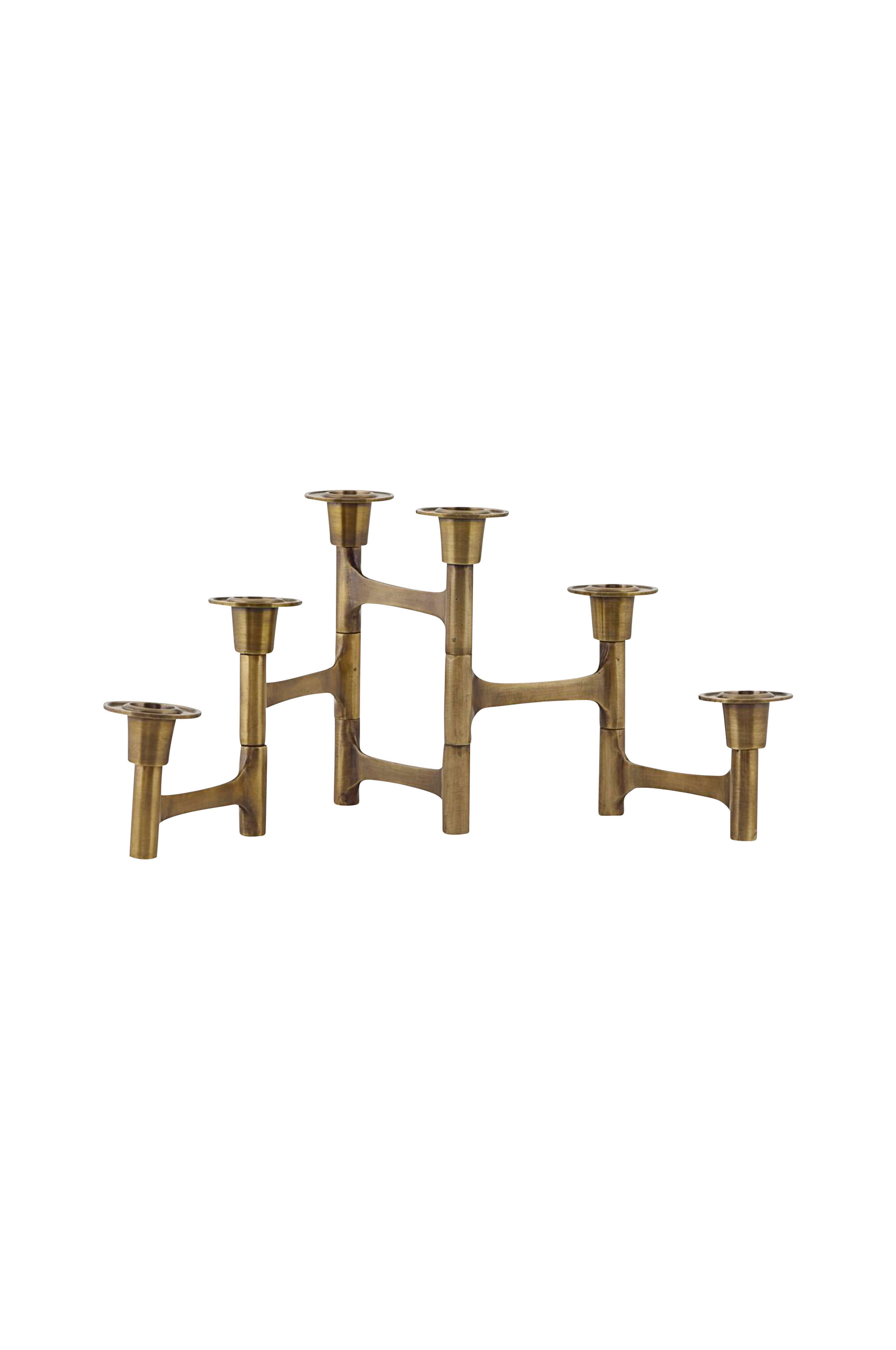 Skapa en mysig atmosfär och massor av personlighet i din inredning med en vacker ljusstake. Move från House Doctor är en vacker ljusstake med en skulptural look med plats för sex ljus. Ljusstaken är gjord av mässing som ger ljusstaken en modern och rigorös touch. Använd ljusstaken som ett vackert designobjekt på matbordet eller i vardagsrummet - med eller utan ljus. Passar till ljus med 4 cm i diameter. Längd 50 cm och höjd 17 cm. Torkas av med en torr trasa.