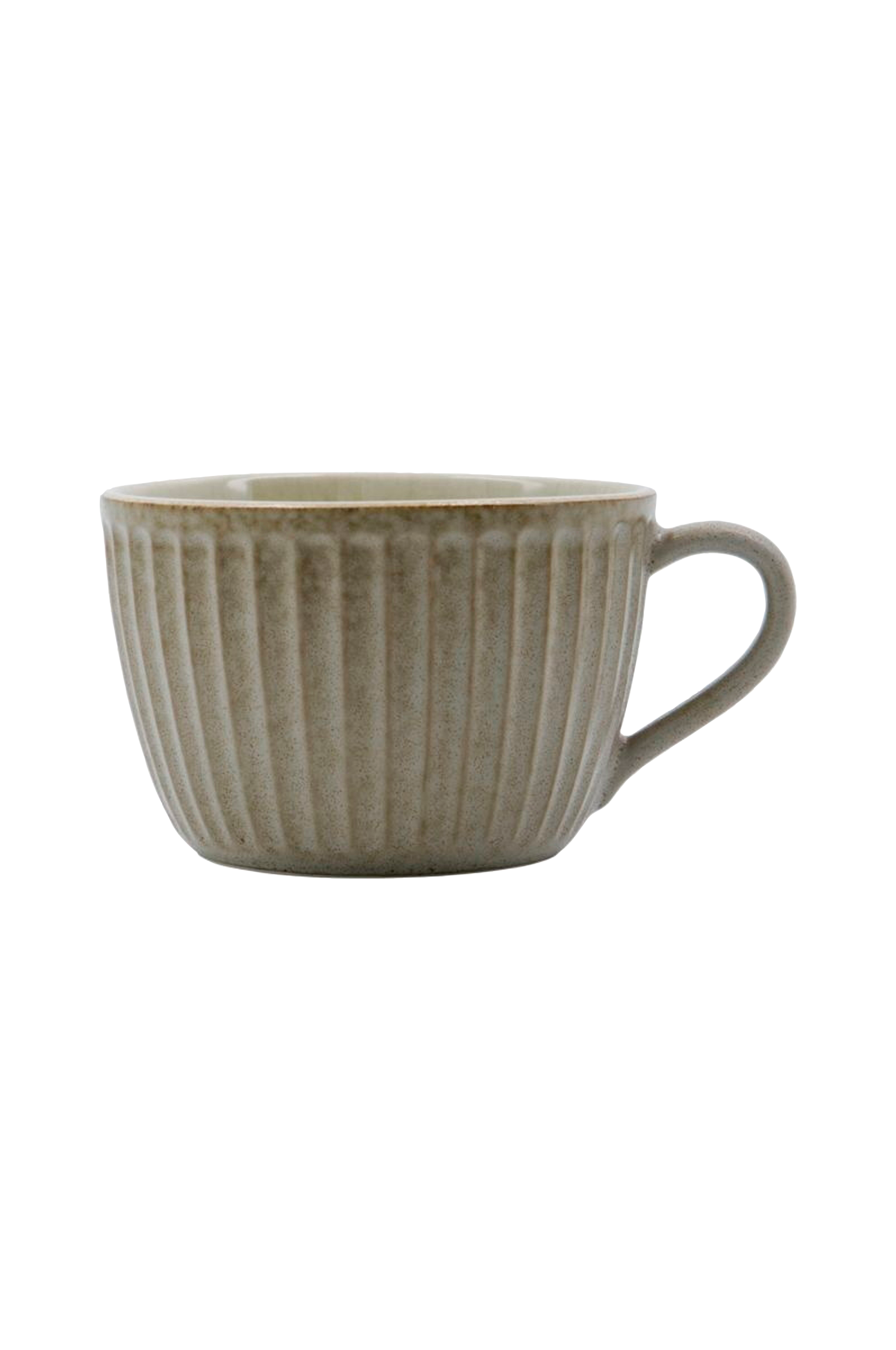 En god kopp te förtjänar rätt mugg. Denna design från House Doctor är lika lämplig för det dagliga morgonteet som för den avslappnade eftermiddagsfikat. Den räfflade designen med en matt utsida och en glansig insida ger din dukning den rätta stilen och elegansen. Till skillnad från en kaffekopp är en traditionell tekopp som denna bredare för att kyla teet snabbare. Och det är därför du behöver båda sorterna i ditt skåp. Godkänd för diskmaskin och mikrovågsugn. Ej godkänd för ugn. Material: Stengods.