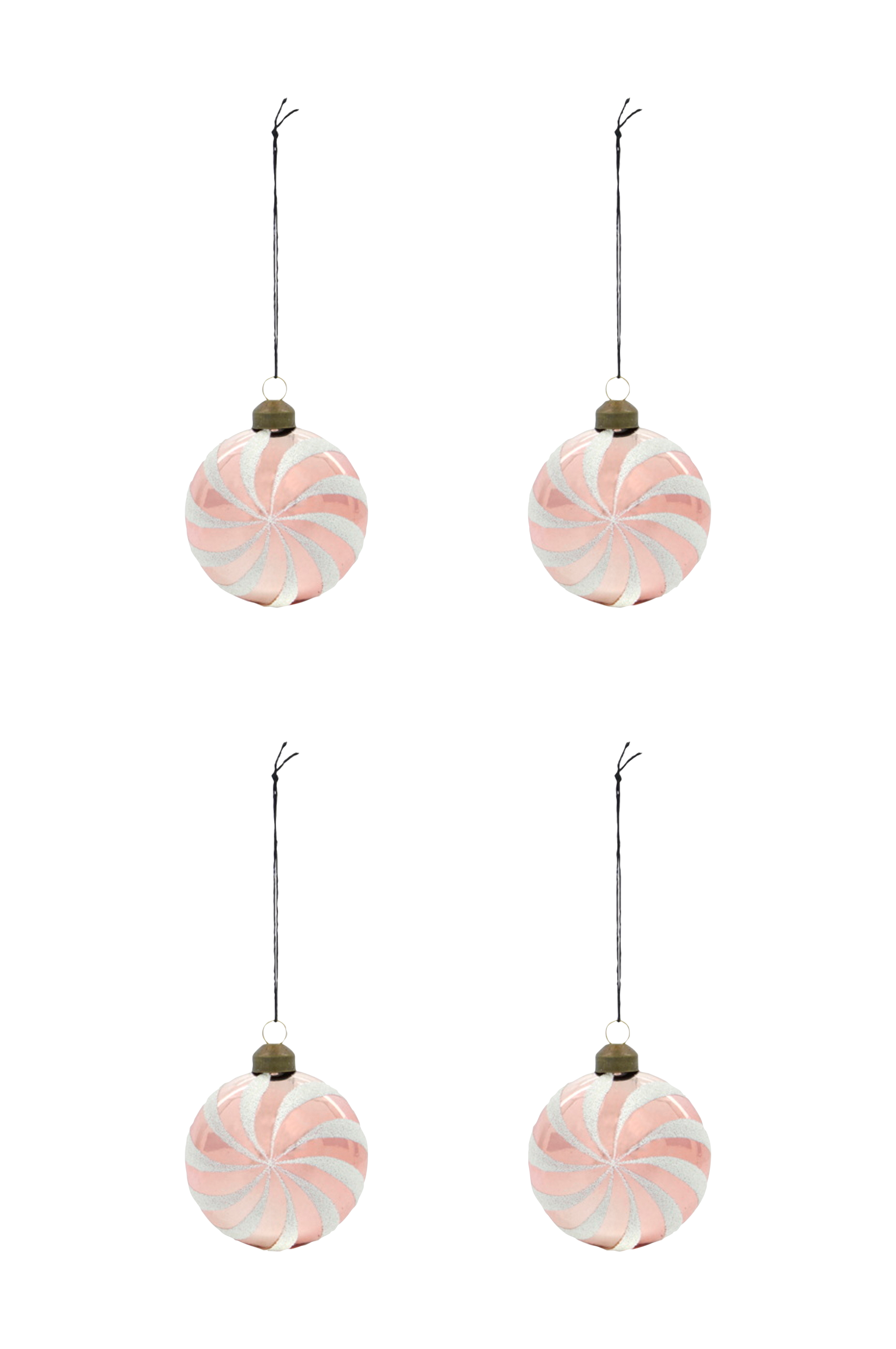 Pryd din julgran med dessa eleganta ornament, tillverkade av munblåst glas. Setet med fyra stycken har en färg med ett fint vitt glittermönster. Den runda och något tillplattade formen ger en modern touch till din juldekoration.