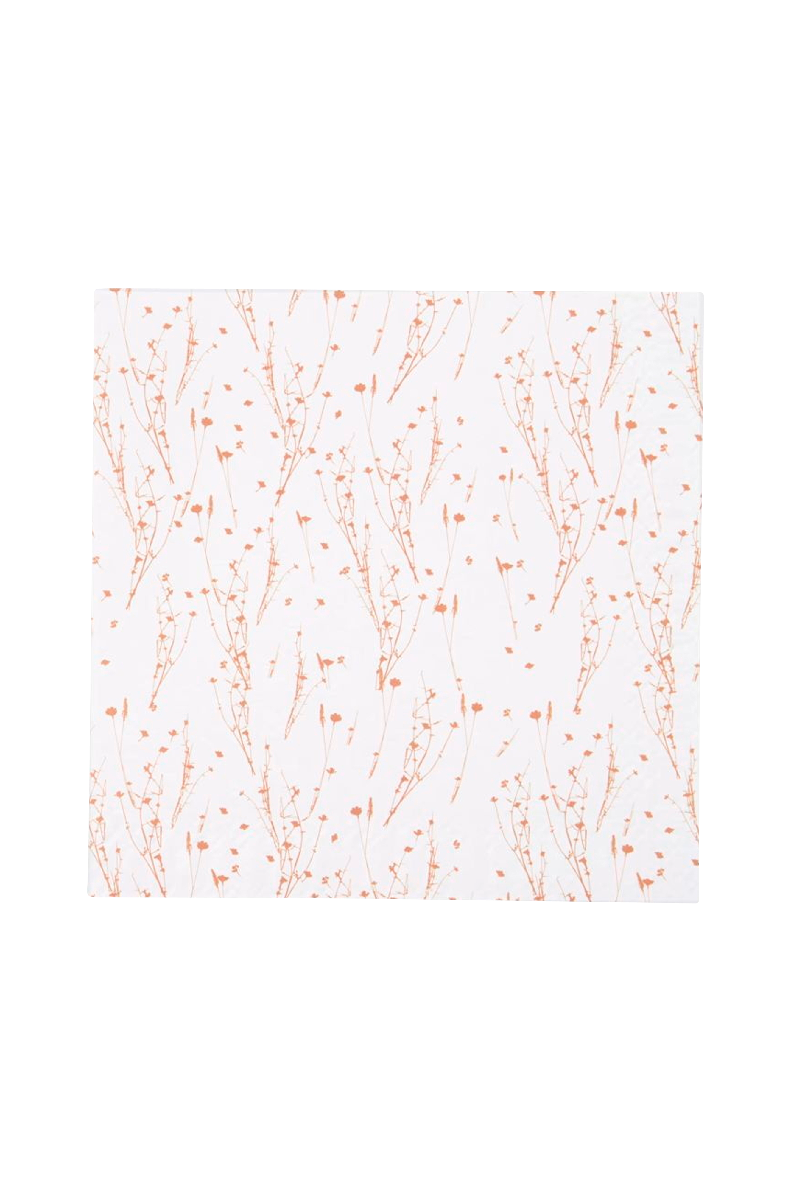 Ett paket med 40 pappersservetter med blommönster för vardagen och informella bordsarrangemang. Servetterna heter Meadow och kompletterar ett bord som har dukats med en vit servis men kan lika gärna användas med jordnära färger tack vare det orangea blommönstret. Med en design som är så här lätt och avslappnad kan du ta med servetterna från House Doctor ut för en grillfest eller lägga till en rolig touch av naturen till dina formella middagar.