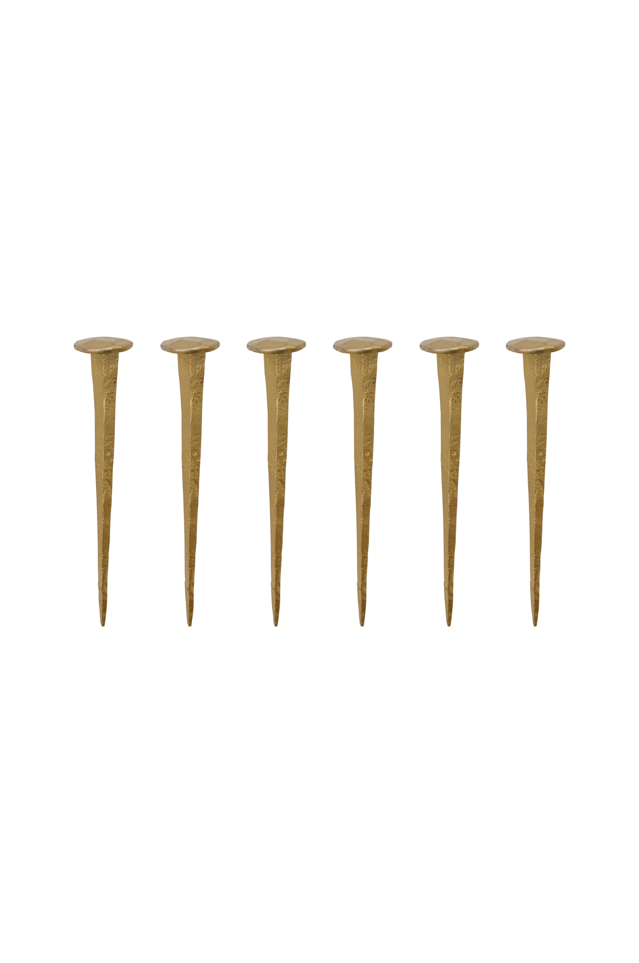 Uppsättning med sex handgjorda spikformade krokar i järn ger en unik, grov accent till din inredning.