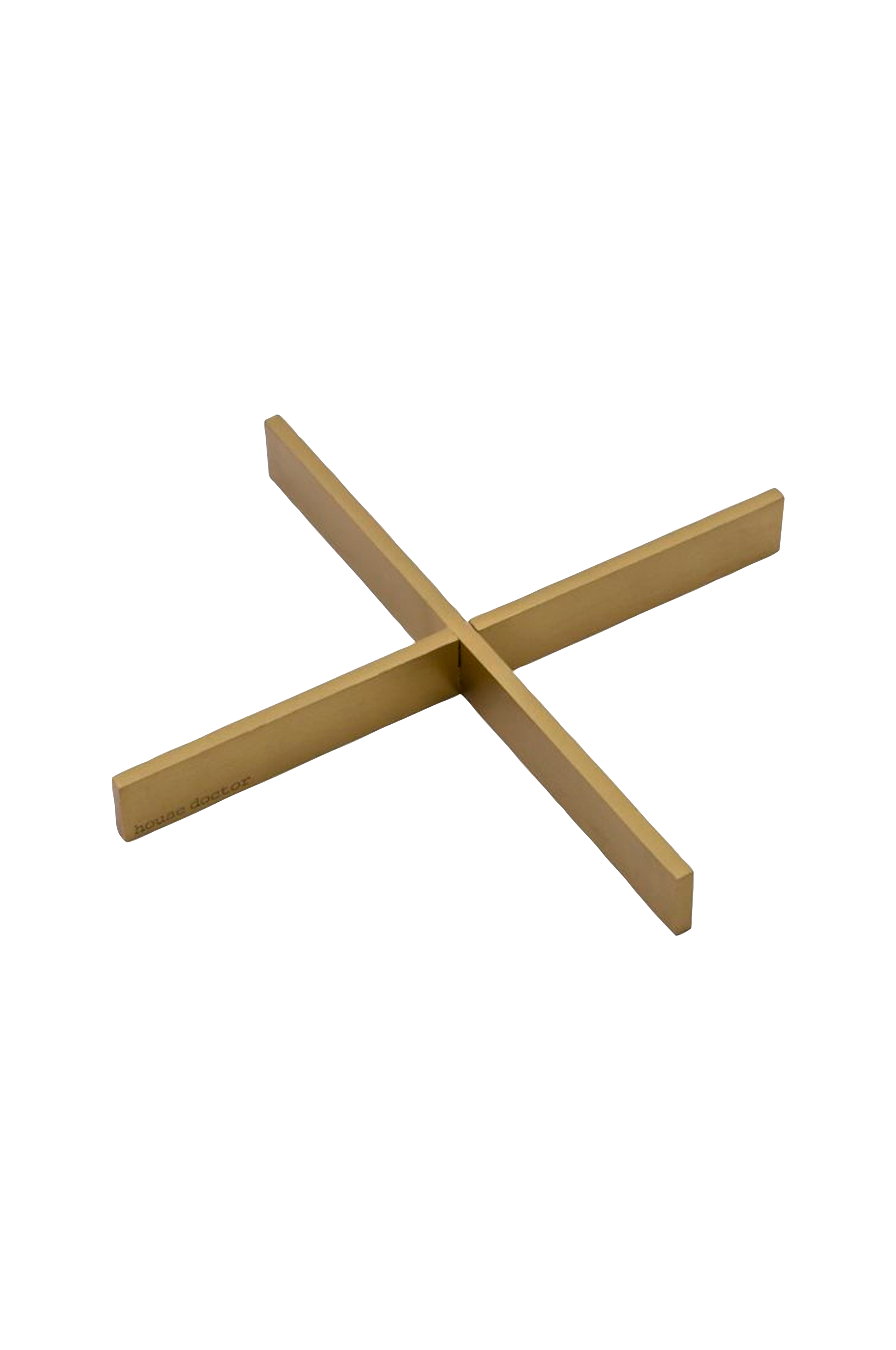 Skydda ditt bord med detta underlägg från House Doctor. Med en elegant design och borstad mässingsfinish ger underlägget den sista touchen till alla bordsdukningar. När Cros inte används är det bara att ta isär den och lägga de två delarna i lådan för enkel förvaring. Tänk på vilken yta du placerar underlägget på, eftersom vissa material har låg värmetålighet och kan skadas av det varma underlägget. Rengör med en torr trasa. Material: Järn.